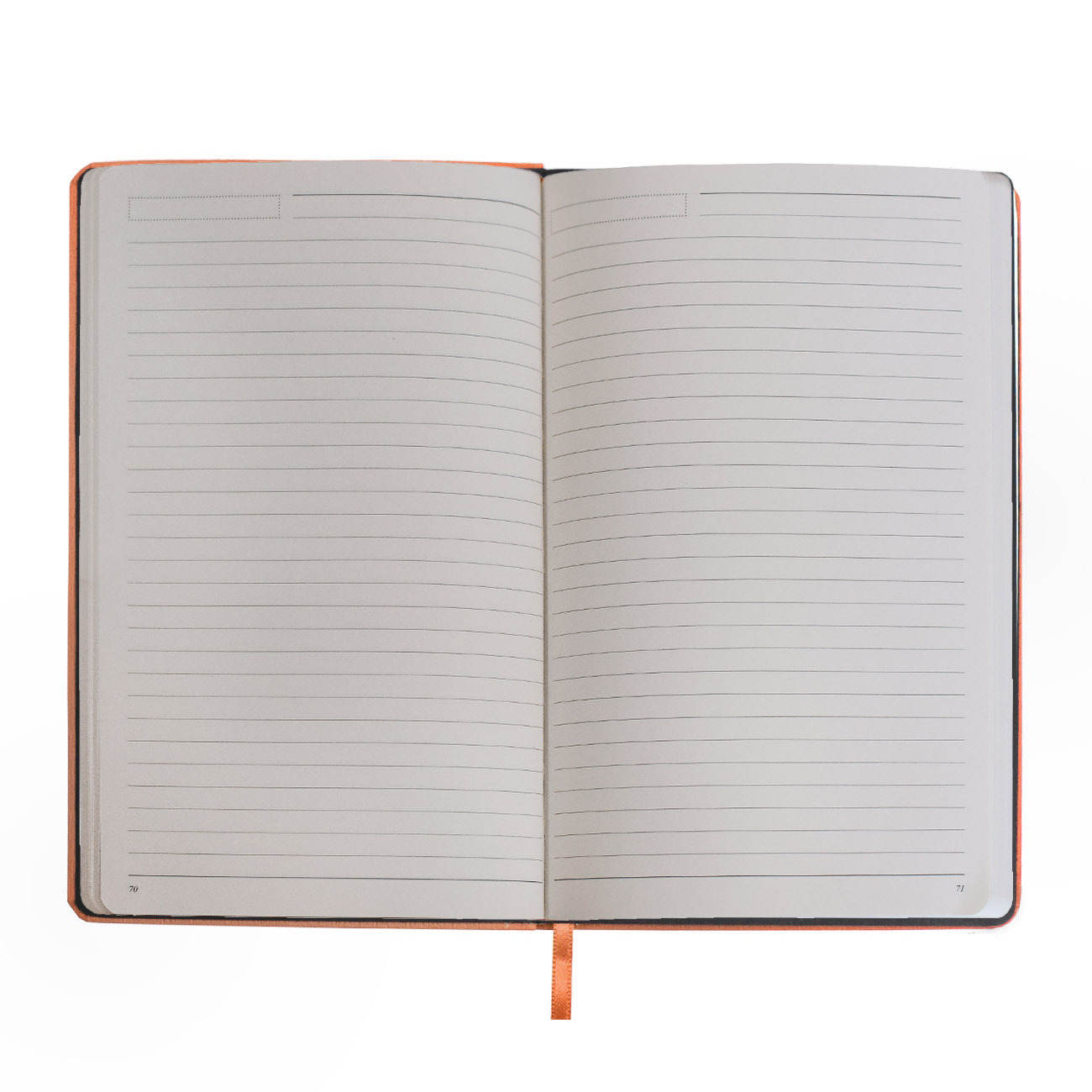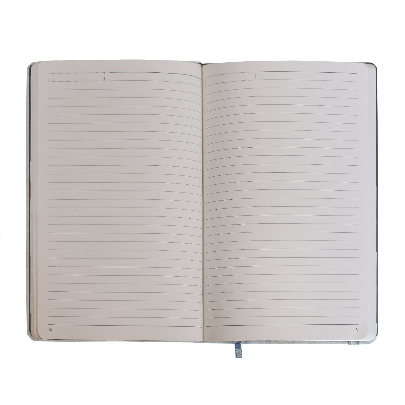 Записная книга внутр.формат 13х21 см в линейку. 192 страниц, все страницы пронумерованы. кремовая бумага 80 г сертифицирована FSC. Печать в 1+1 цвет. Шитый блок. Форцазы из черной дизайнерской бумаги 140 гр FSC. Гибкая обложка из премиального кожзама от ведущего итальянского производителя. Ляссе в тон обложки. Резинка 8 мм в тон обложки.