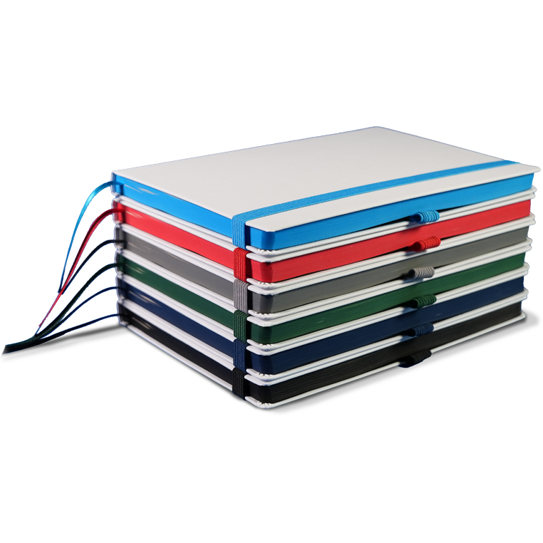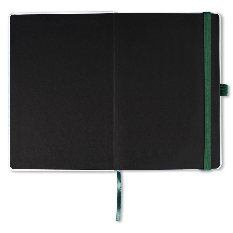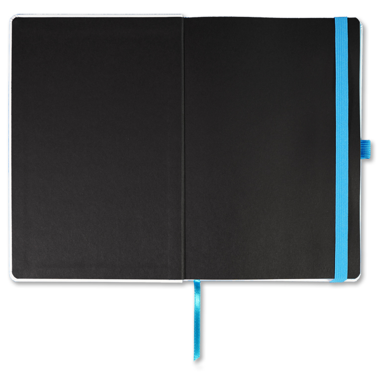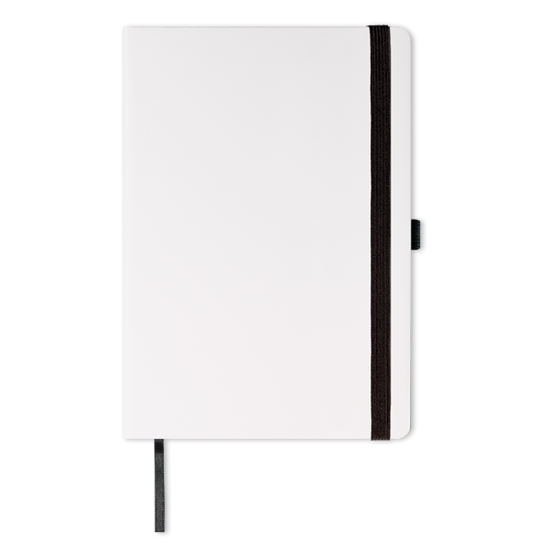 Записная книга формат 14,5х21 см в линейку 256 страниц, кремовая бумага 70 г сертифицирована FSC. Дополнительно имеются страницы в точку, в клетку, для систематизации проектов, а также листы без разметки с перфорацией. Печать в 1+1 цвет, все страницы пронумерованы. Шитый блок Форцазы из черной дизайнерской бумаги 140 гр FSC. Белая обложка из высококачественного кожзама от ведущего итальянского производителя. Ляссе в тон обложки. Резинка 10 мм в тон обложки.