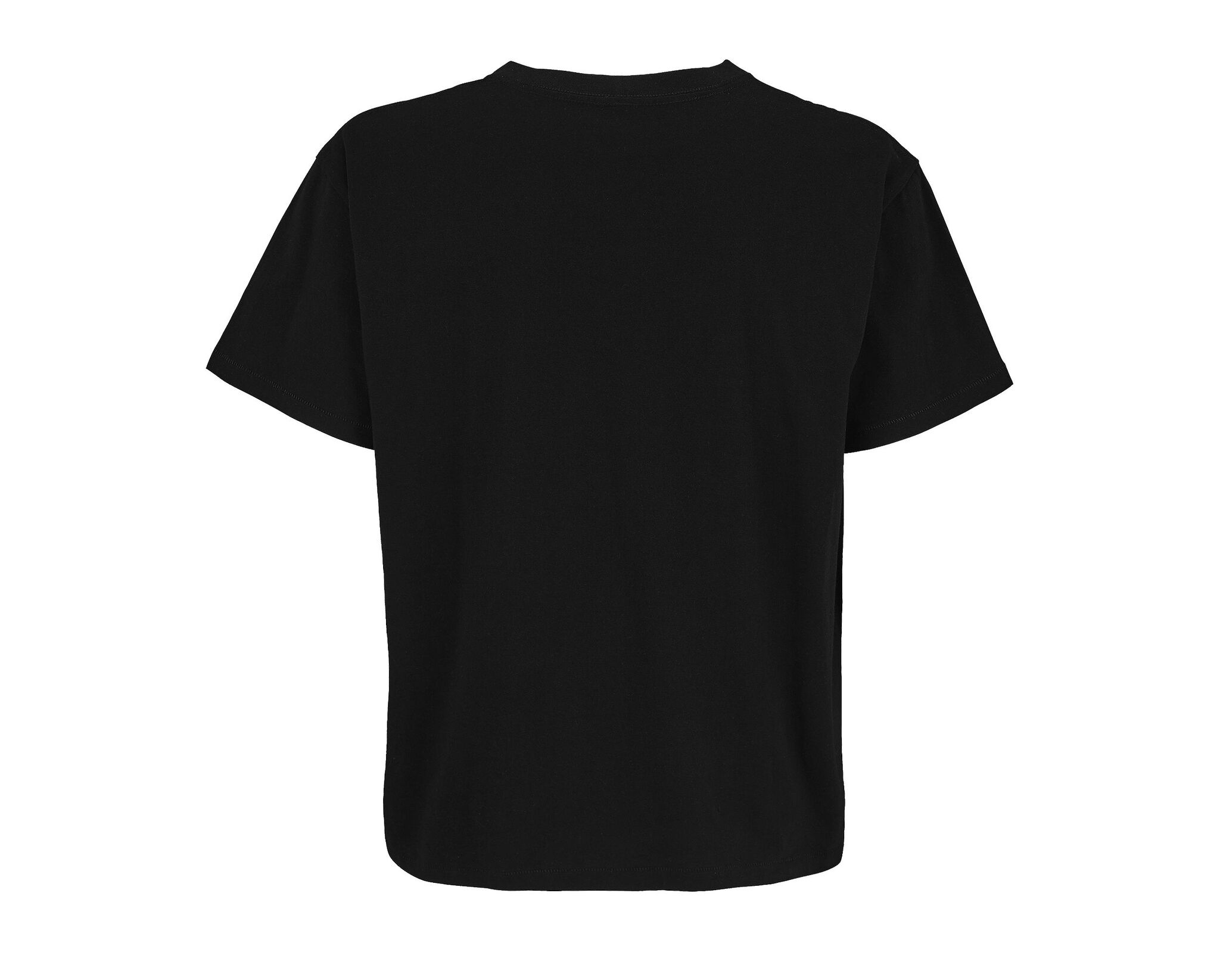 Круглая горловина с отделкой трикотажной резинкой, полая, крой оверсайз, приспущенные плечи, подкладка на горловине и плечах.