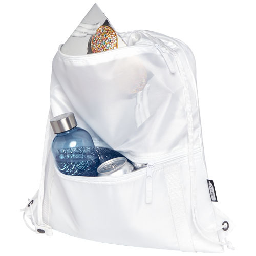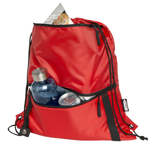 Изолированная сумка со шнурком Adventure из переработанных материалов, соответствующих стандарту GRS, — это значительное улучшение по сравнению с обычными сумками со шнурком. Сумка имеет главное отделение с затягивающейся застежкой сверху и изолированный карман на молнии снизу. Плетенные цепочки идеально подходят для прикрепления карабина.