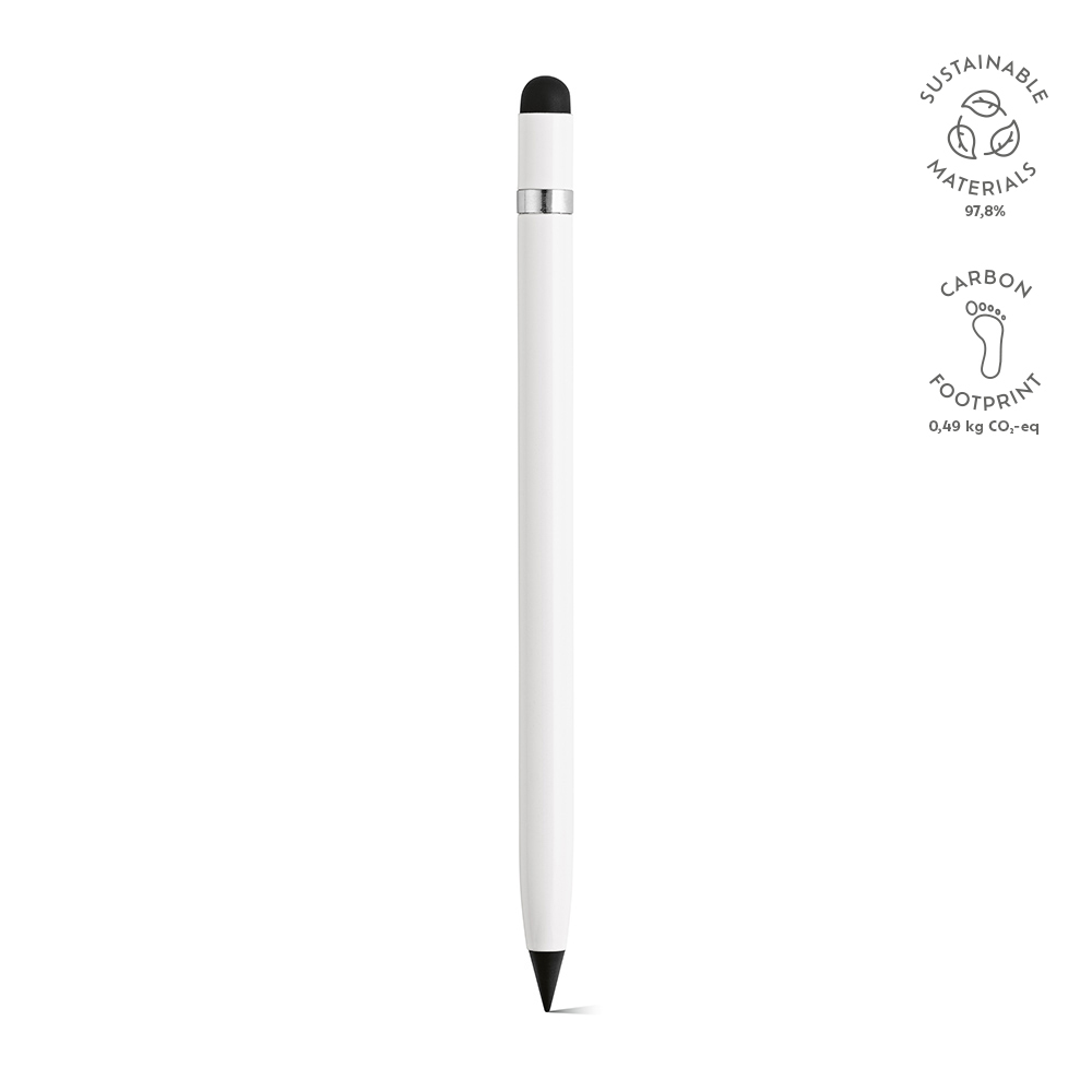 Изготовленная из переработанного алюминия, этот карандаш без чернил меняет представление о письме. Улучшена серебряной деталью, препятствующей скатыванию, внутренним ластиком и сенсорным наконечником. Представлена в индивидуальной коробке из переработанной бумаги.