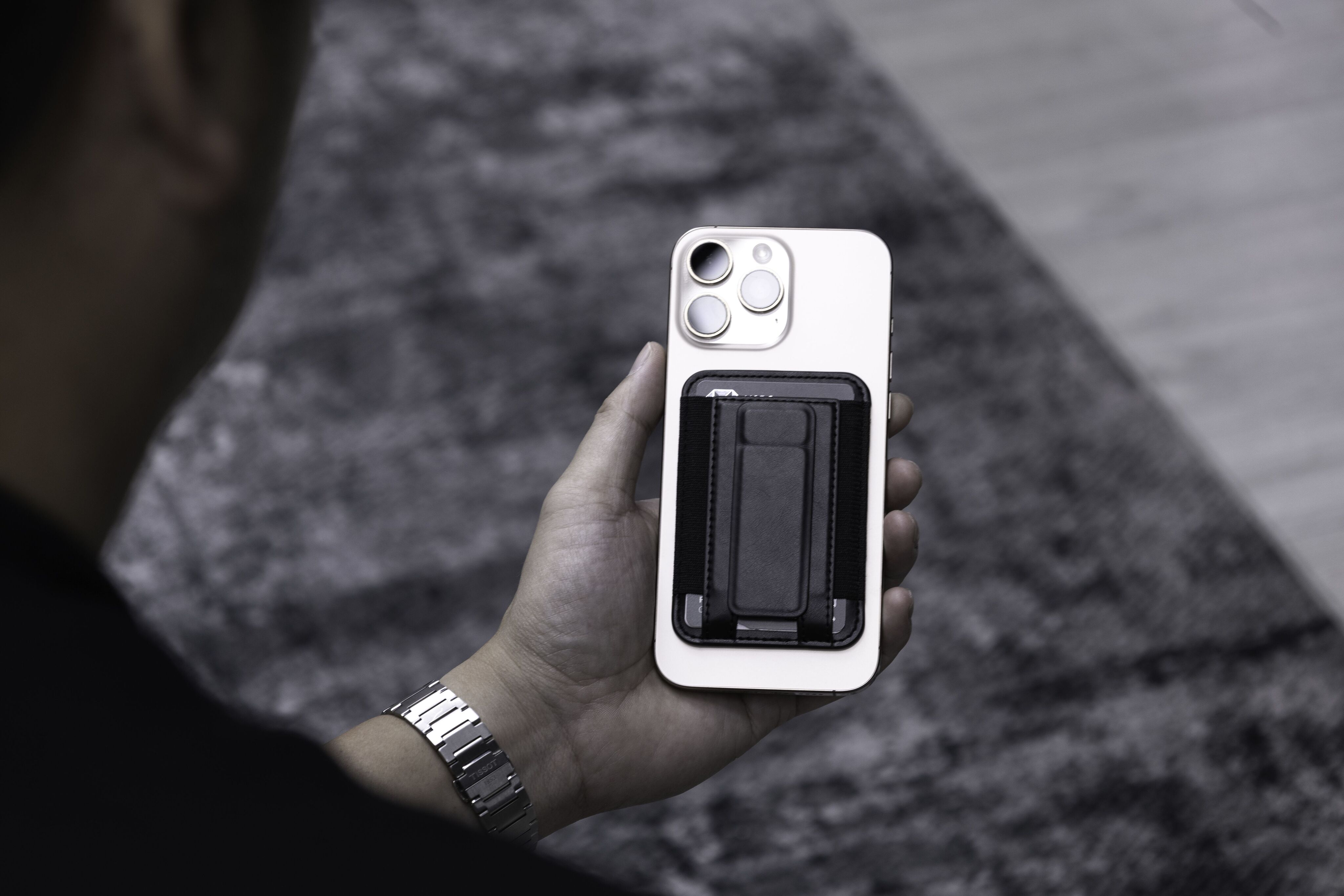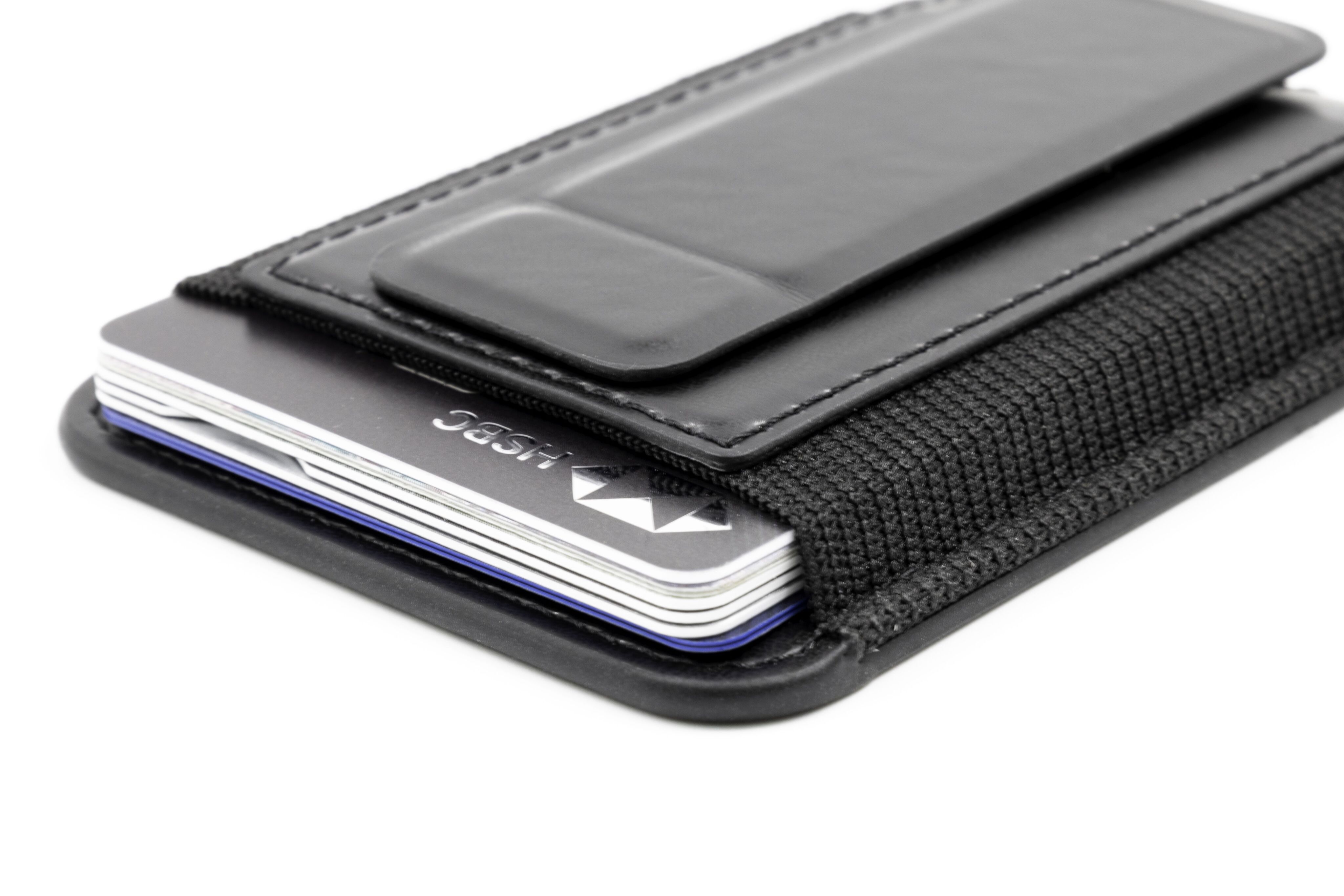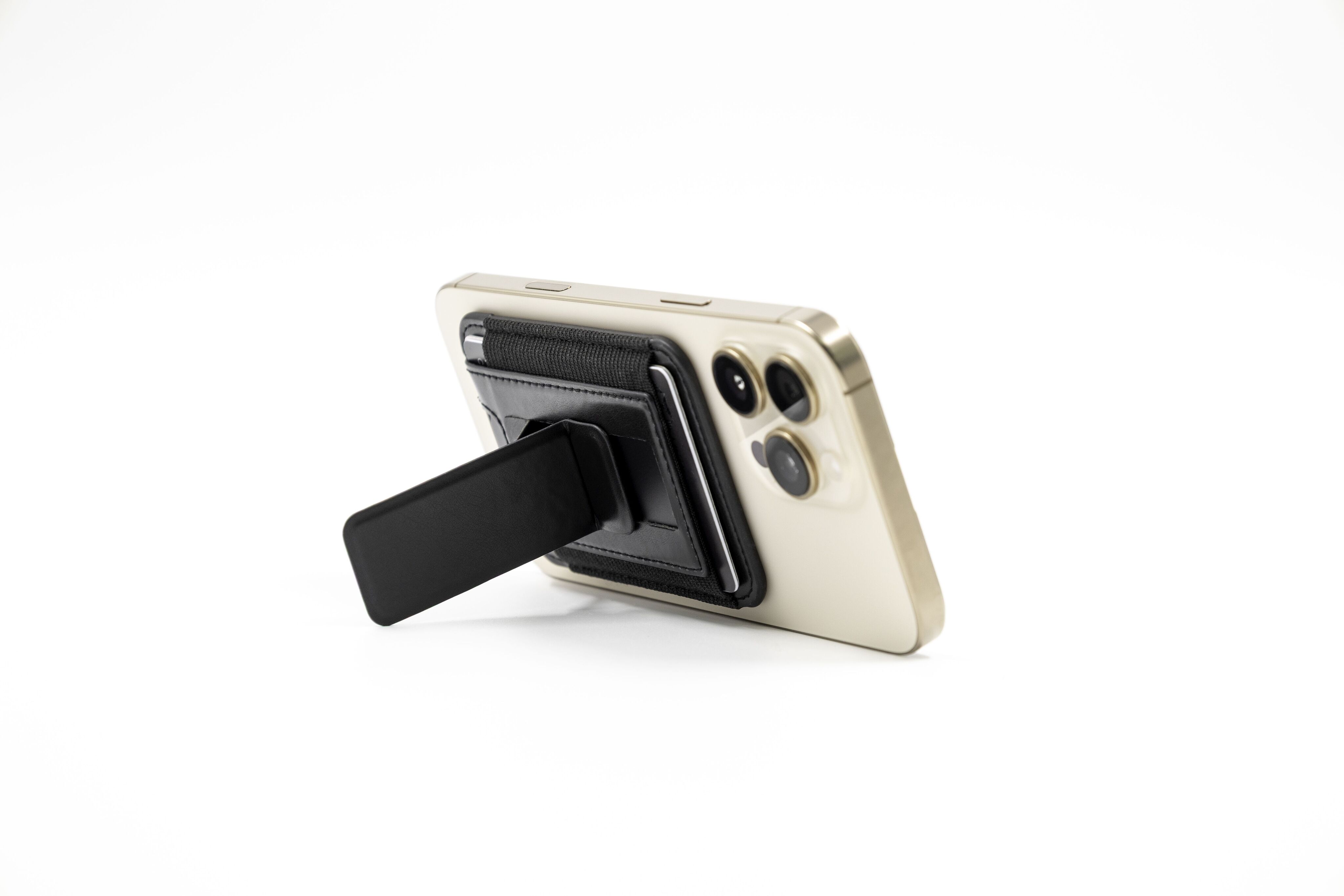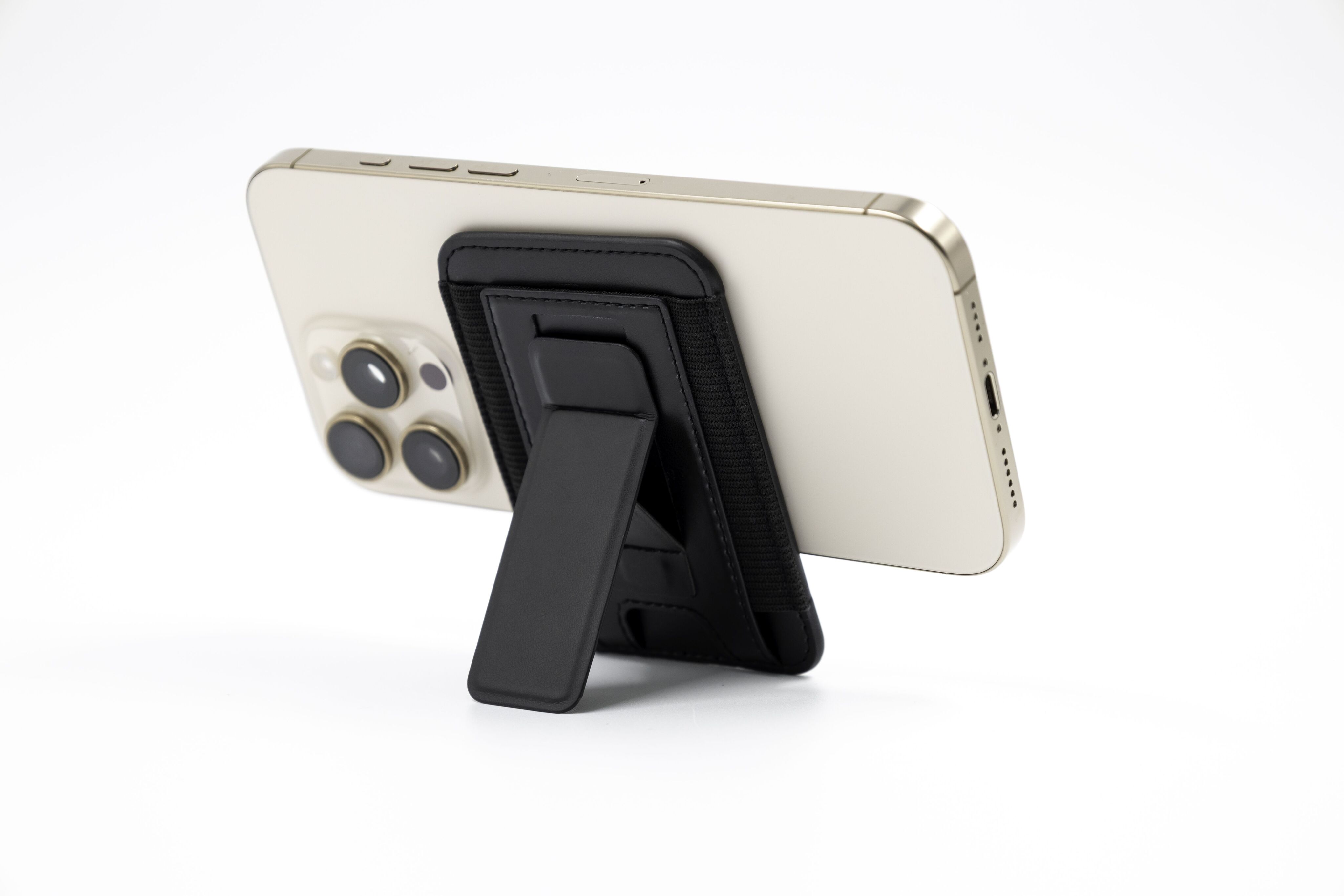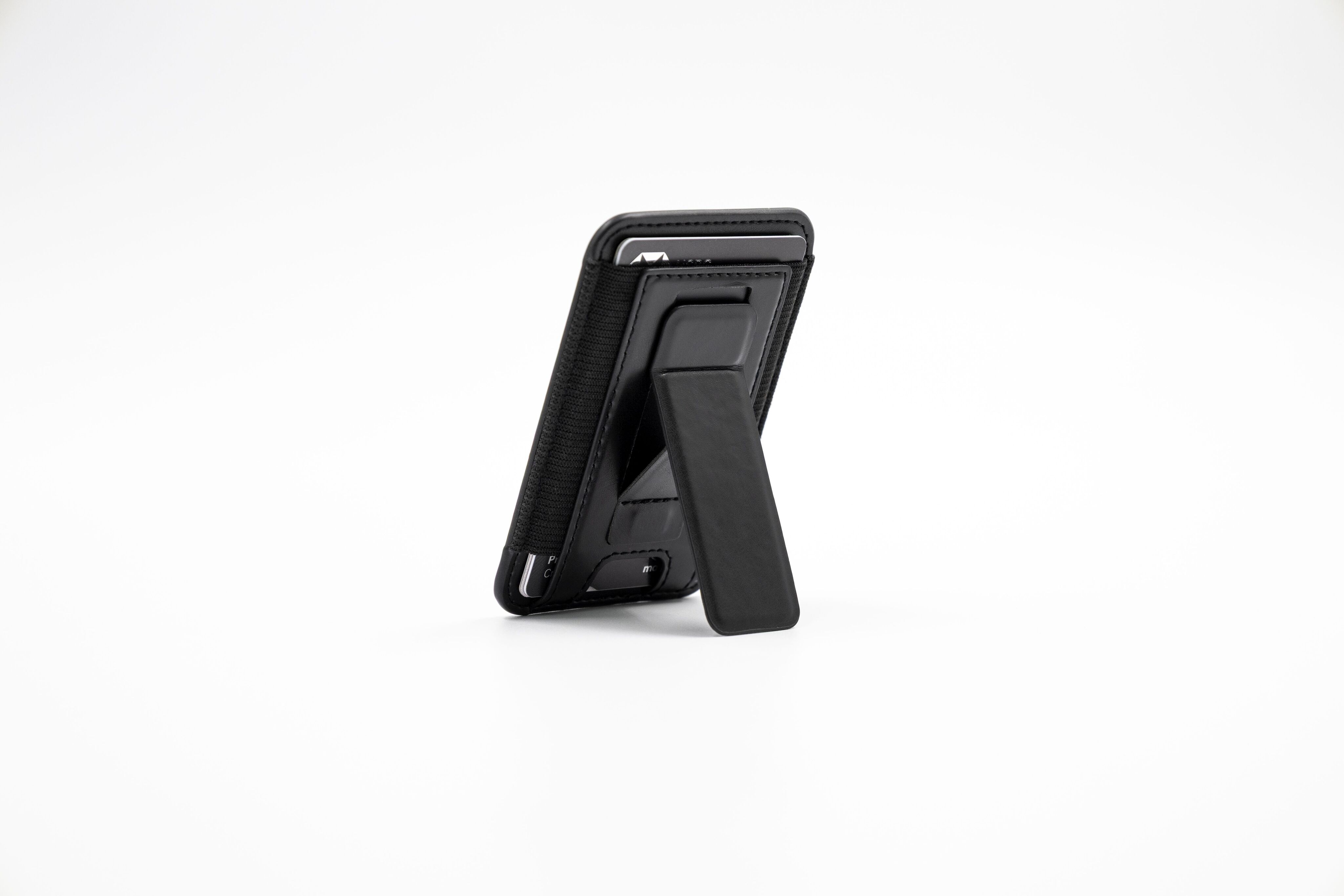Кардхолдер изготовлен из переработанной искусственной кожи (PU), надёжно крепится к смартфону с помощью MagSafe, вмещает до 6 карт, а при раскрытии превращается в подставку для телефона с возможностью установки в вертикальном или горизонтальном положении.