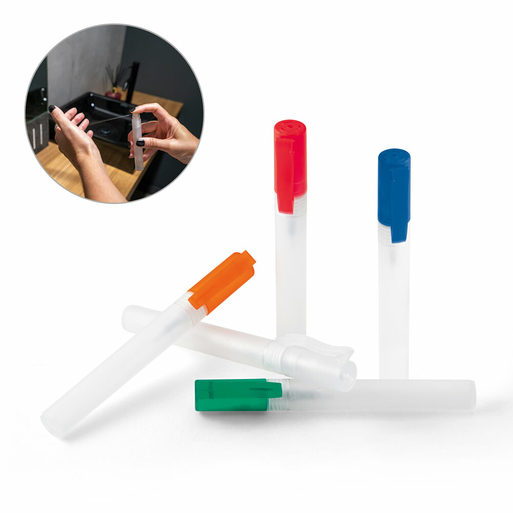 Очиститель для рук на спиртовой основе (спрей) с крышкой и емкостью до 10 мл. Перезаряжаемый. ø15 x 140 мм