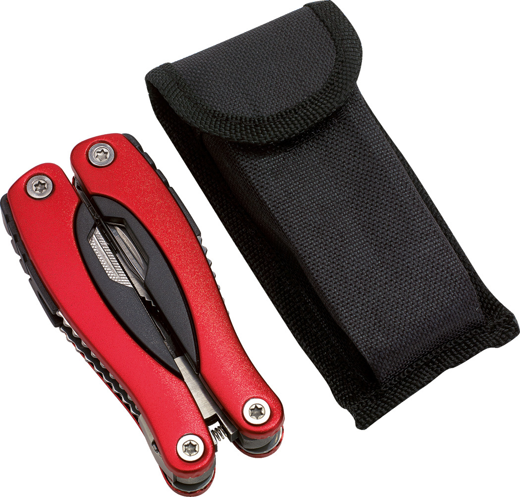 Многофункциональный инструмент BIG PLIERS складные плоскогубцы, ручки покрыты алюминием, из нержавеющей стали; пила, напильник, скребок для рыбы с меркой в дюймах, открывалки для консерв и бутылок, отвертка Philips и плоская двух размеров, нож; в нейлоновой сумке на липучке, со шлейкой для закрепления на ремне