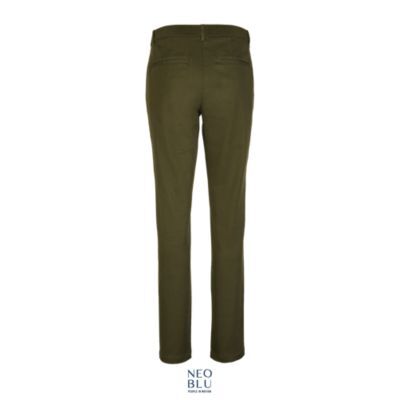 ЖЕНСКИЕ БРЮКИ ЧИНОС С ЭЛАСТИЧНЫМ ПОЯСОМ. Чино; Застежка на молнию и пуговицу; Шлевки для ремня; Эластичный пояс; 2 передних косых кармана; 2 задних прорезных кармана на пуговицах