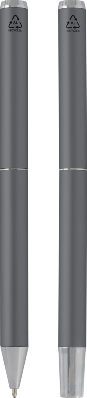 Корпуса ручек в этом комплекте шариковых ручек и ручек-роллеров изготовлены из матового анодированного переработанного алюминия с блестящими хромированными аксессуарами. Алюминий — это материал, который можно легко переработать, и выбирая этот комплект ручек, вы способствуете применению более экологичных методов и даете вторую жизнь выброшенным материалам из алюминия. Эти ручки — практичный и более устойчивый вариант для частных лиц и предприятий, которые ищут экологичные письменные принадлежности. Цвет чернил ручки: черный. Размер пера: 1,0 мм. Длина непрерывной линии: 800 метров. Поставляется в черной подарочной коробке с черной шелковой лентой. Размер коробки: 16,2 x 5,1 x 2,7 см. Recycled Aluminium.