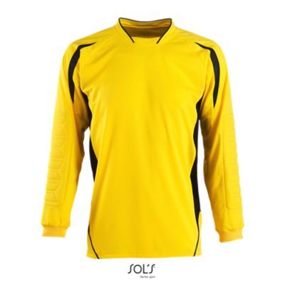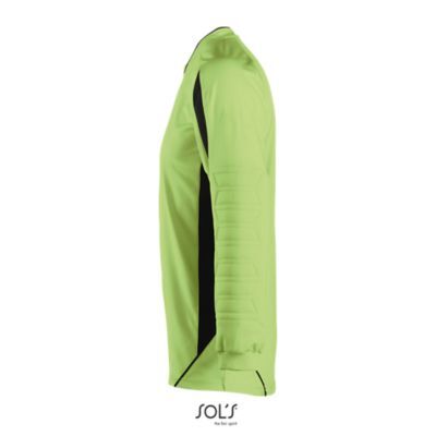 ДЕТСКАЯ ФУТБОЛКА ВРАТАРЯ. Рукав реглан.; Контрастные перфорированные вставки по бокам и на рукавах.; Длинный рукав с манжетами в резинку и налокотниками для защиты от ударов.; Удлиненная спинка с закруглением по низу.