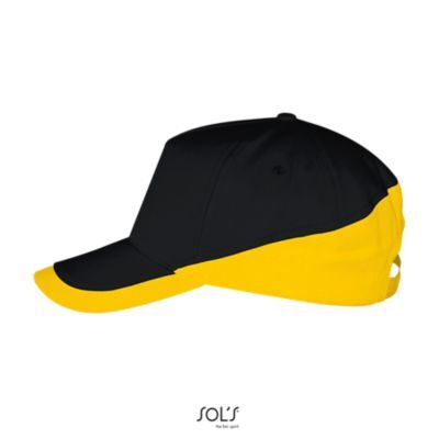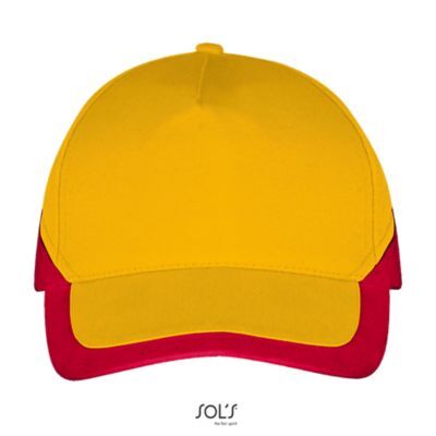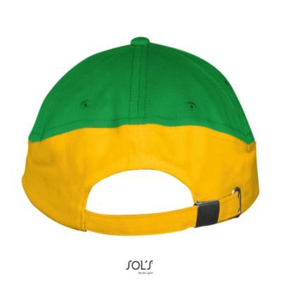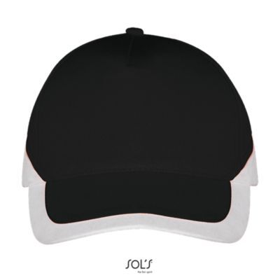 ДВУХЦВЕТНАЯ БЕЙСБОЛКА ИЗ 5 КЛИНЬЕВ. 5 клиньями; жесткий козырек "сэндвич"; 4 вышитых отверстия для вентиляции; регулируемая металлическая застежка