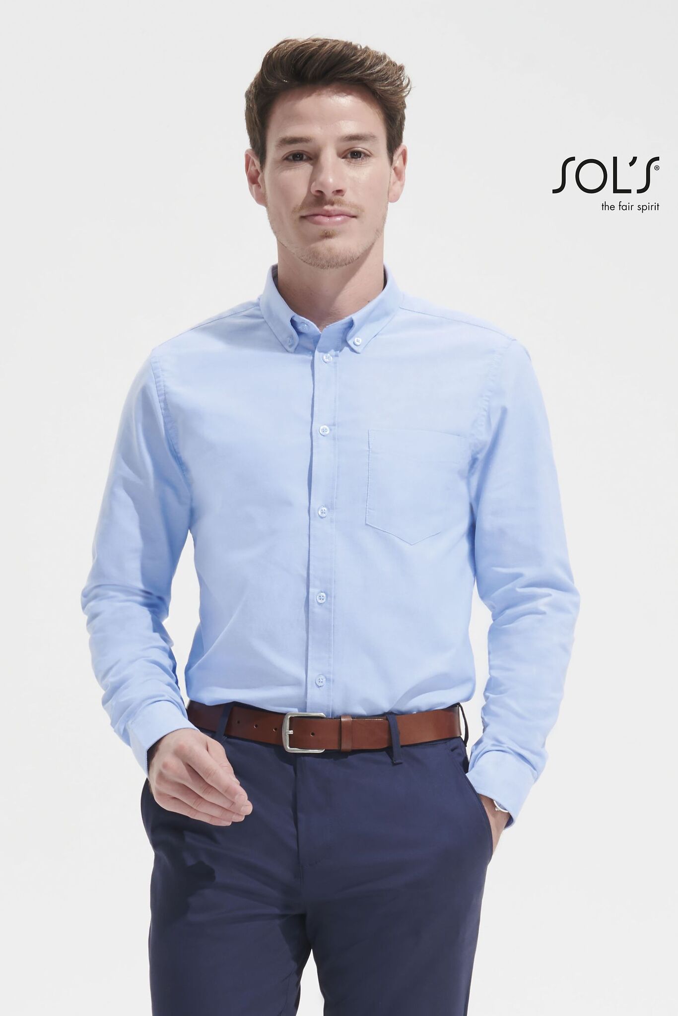 РУБАШКА МУЖСКАЯ «ОКСФОРД» С ДЛИННЫМ РУКАВОМ. Полуприлегающий крой; Длинный рукав; Воротник на пуговицах; Регулируемые манжеты на 2 пуговицах и разрез рукава "капуцин"; Планка с 7 пуговицами в цвет изделия; Нагрудный карман слева