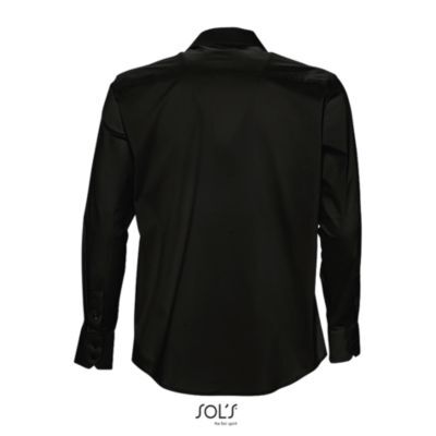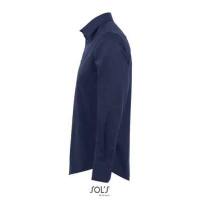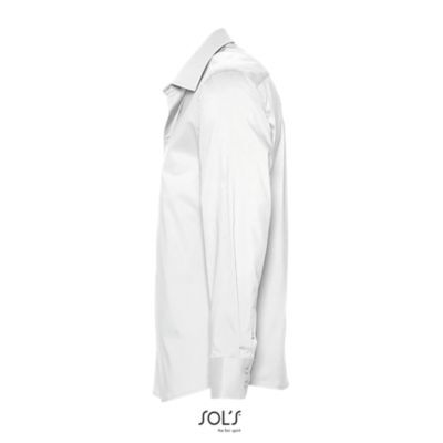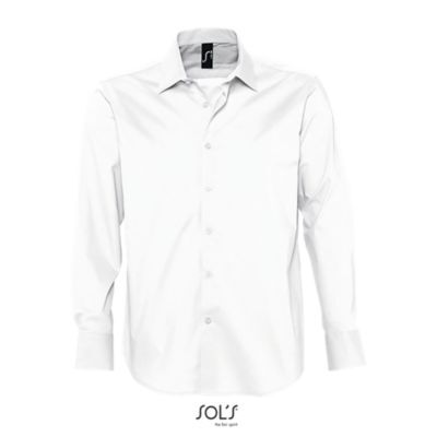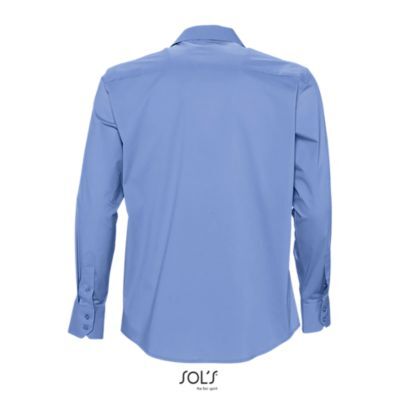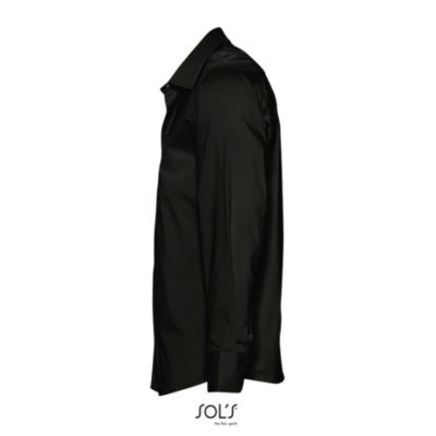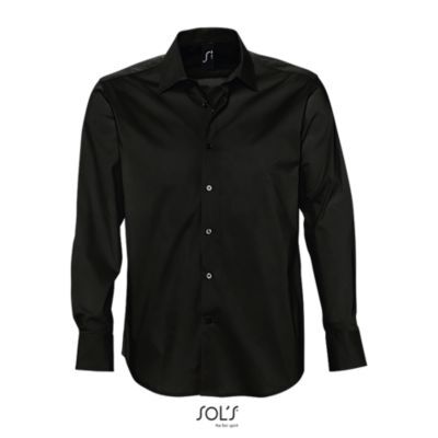 РУБАШКА МУЖСКАЯ ИЗ ТКАНИ СТРЕТЧ С ДЛИННЫМ РУКАВОМ. Полуприлегающий крой; Длинный рукав; Воротник на одной пуговице; Манжеты на 2 пуговицах и разрез рукава "капуцин"; Планка с 7 пуговицами в цвет изделия