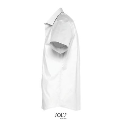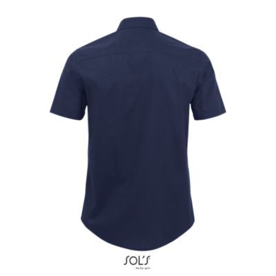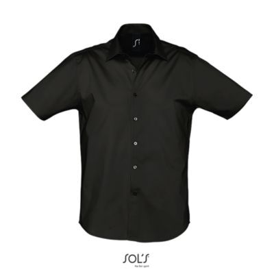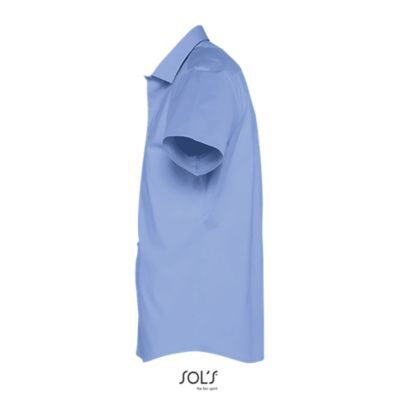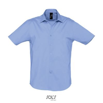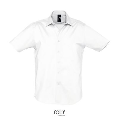 РУБАШКА МУЖСКАЯ ИЗ ТКАНИ СТРЕТЧ С КОРОТКИМ РУКАВОМ. Полуприлегающий крой; Короткий рукав; Воротник на одной пуговице; Планка с 7 пуговицами в цвет изделия