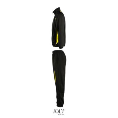 ТРЕНИРОВОЧНЫЙ КОСТЮМ. Куртка, пояс и манжеты отделаны эластичной диагональной резинкой.; Передняя застежка и карманы на молнии.; Большие контрастные перфорированные вставки по бокам и на рукавах гарантируют оптимальную воздухопроницаемость.