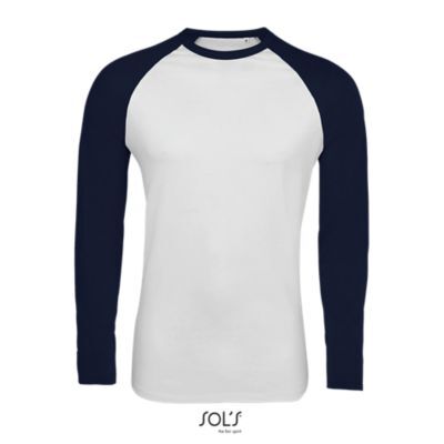 МУЖСКАЯ ДВУХЦВЕТНАЯ ФУТБОЛКА С ДЛИННЫМ РУКАВОМ РЕГЛАН. Двухцветная; Вырез отделан резинкой с эластаном; Кроеный трикотаж; Рукава реглан; Закругленный низ