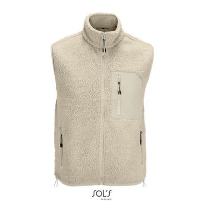 ЖИЛЕТ ИЗ МЕХА ШЕРПА УНИСЕКС. Основная застежка и боковые карманы на нейлоновой молнии контрастного цвета