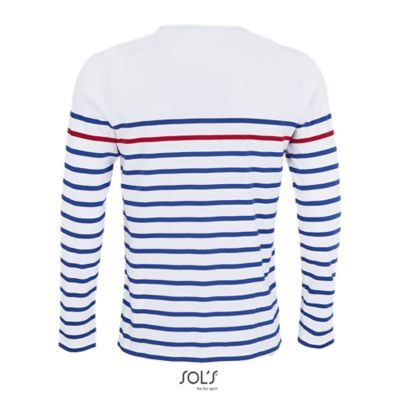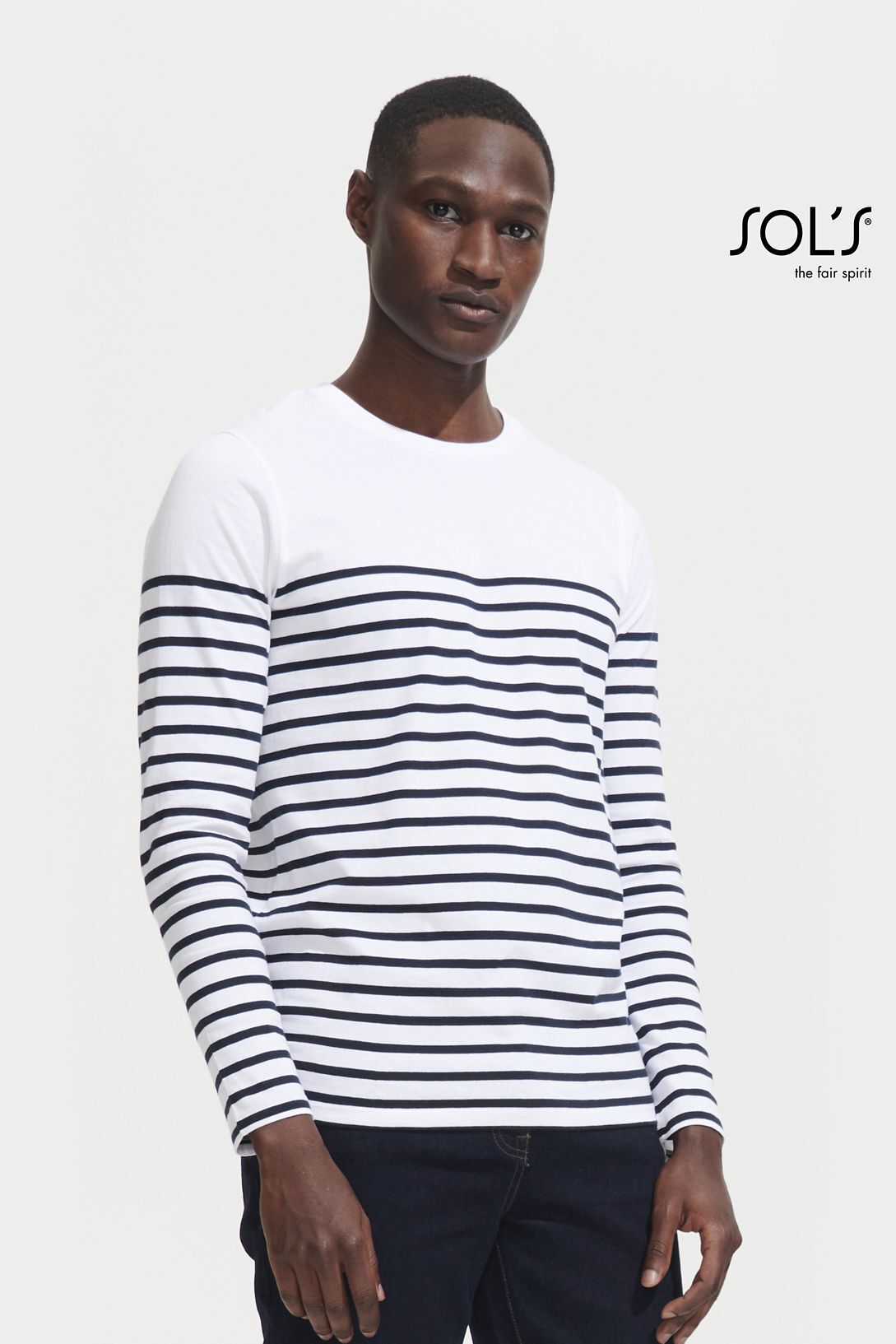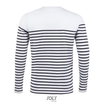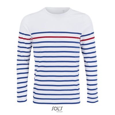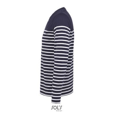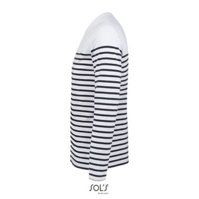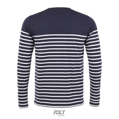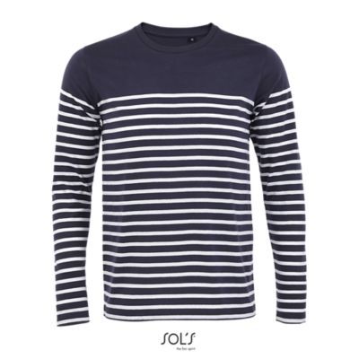 МУЖСКАЯ ФУТБОЛКА В ПОЛОСКУ С ДЛИННЫМ РУКАВОМ. Круглый вырез; Прямой крой; Кроеный трикотаж; Отделка в полоску