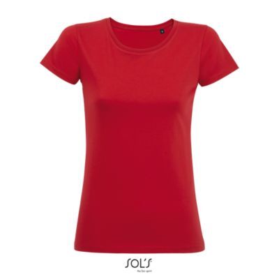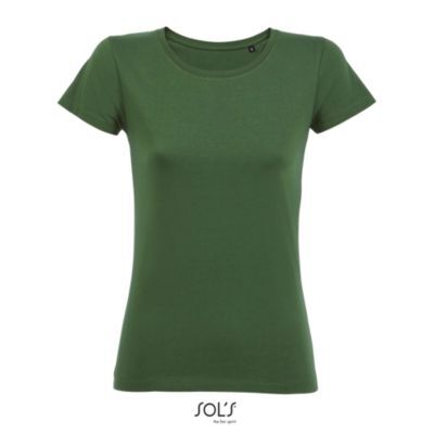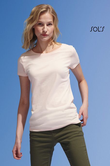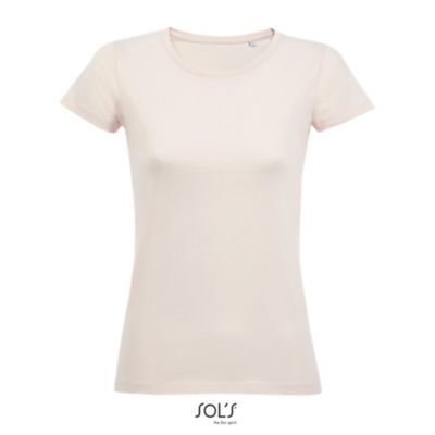 ЖЕНСКАЯ ФУТБОЛКА С КОРОТКИМ РУКАВОМ. Круглый вырез отделан резинкой; Кроеный трикотаж; Приталенная модель; Короткий рукав; Укрепляющая тесьма по вороту