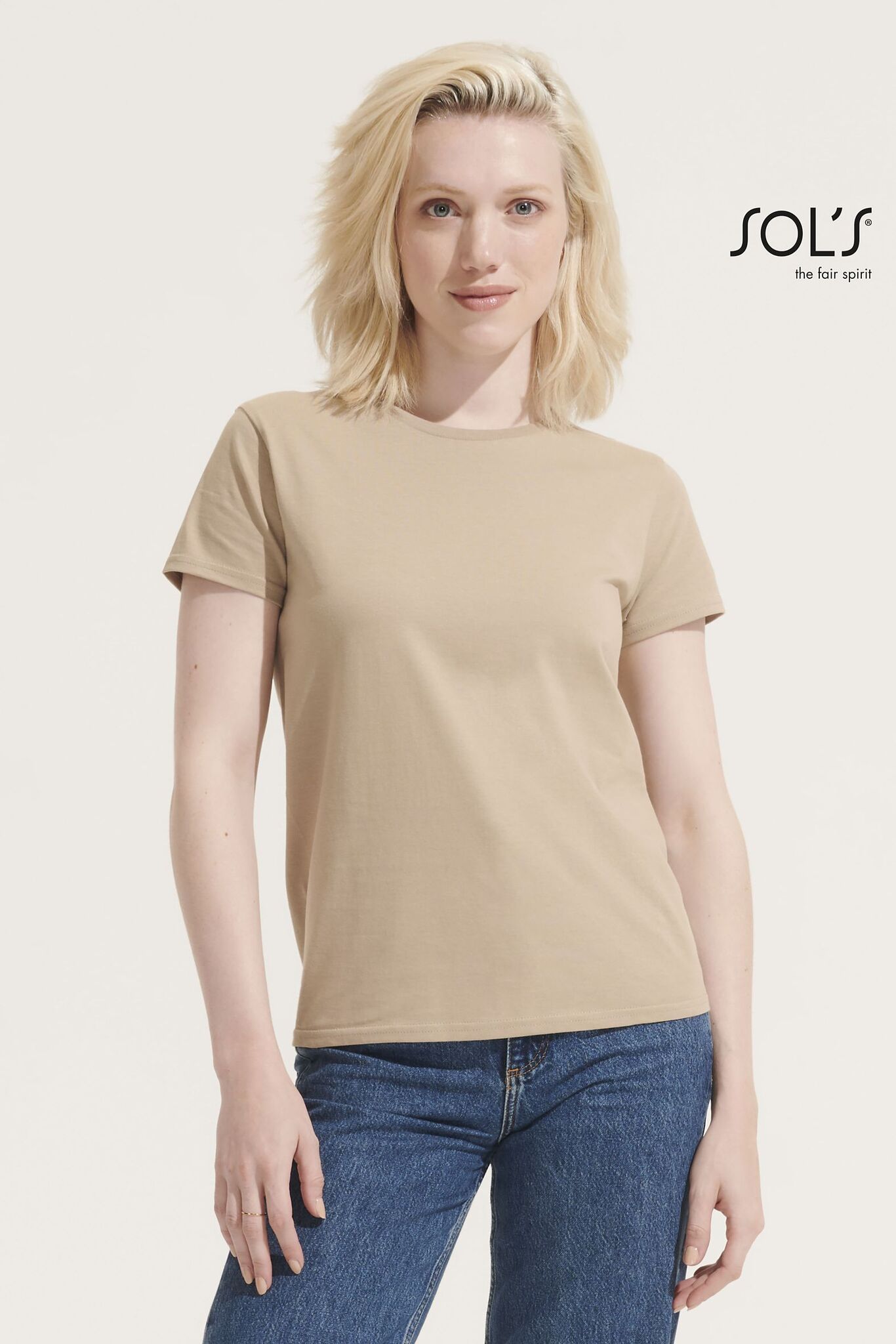 ЖЕНСКАЯ ОБЛЕГАЮЩАЯ ФУТБОЛКА ИЗ ДЖЕРСИ С КРУГЛЫМ ВЫРЕЗОМ. Ребристый воротник из 100% хлопка; Круглый вырез; Укрепляющая тесьма по вороту; Облегающая модель; Без боковых швов