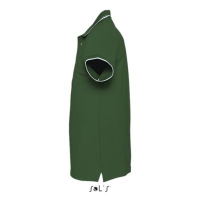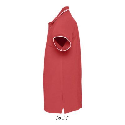 ЖЕНСКАЯ РУБАШКА ПОЛО С КОРОТКИМ РУКАВОМ. Ребристый воротник и манжеты; Подкладка на воротнике; Короткие рукава; Контрастный полосатый воротник и манжеты; Однотонный воротник с 4 пуговицами; Прямой подол с контрастными боковыми разрезами из саржи; Вшитый разрез; Запасная пуговица на внутреннем боковом шве
