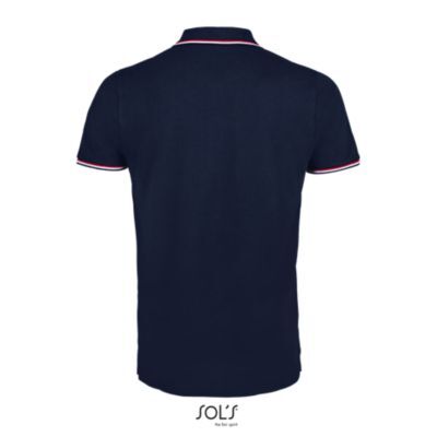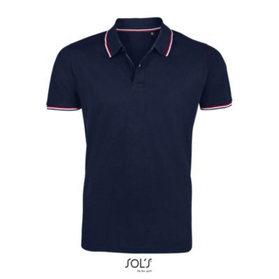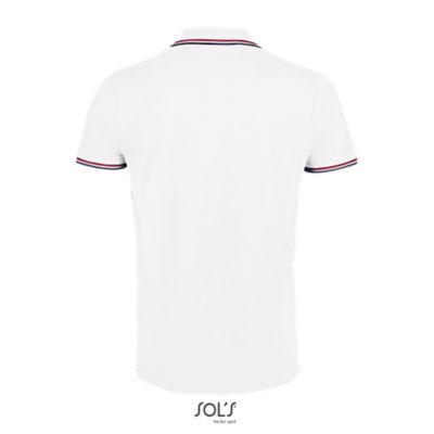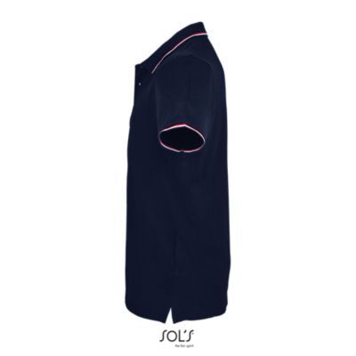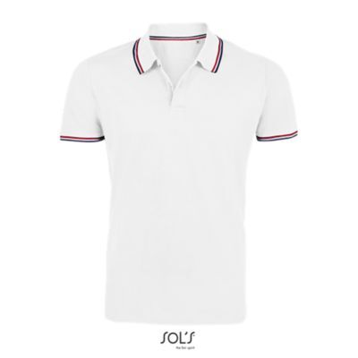 МУЖСКАЯ РУБАШКА ПОЛО. Воротник и нижний край рукавов в резинку 1х1; Плетеная укрепляющая тесьма по внутренней стороне ворота; Короткий рукав; Планка с 2 пуговицами; Кроеный трикотаж; Контрастные полоски на воротнике, по низу рукавов, внутри бокового разреза и на внутренней стороне ворота