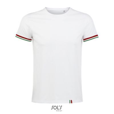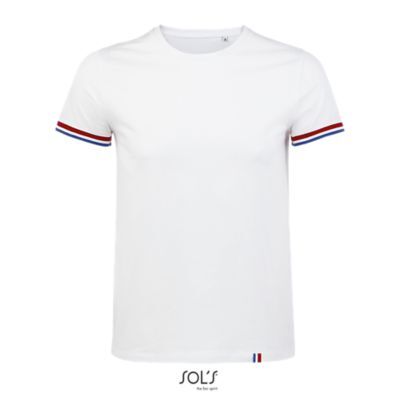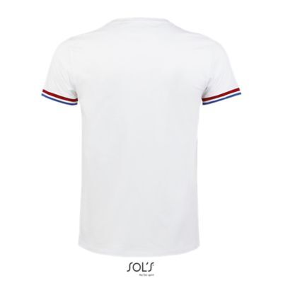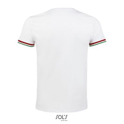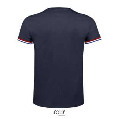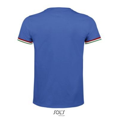 МУЖСКАЯ ФУТБОЛКА С КОРОТКИМ РУКАВОМ. Круглый вырез в резинку 1x1; Без боковых швов; Короткий рукав; Нижний край рукавов в резинку 1х1 с контрастными полосками; Укрепляющая тесьма по вороту