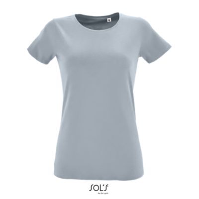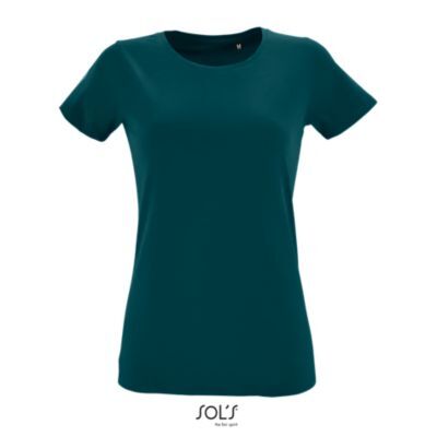 ЖЕНСКАЯ ФУТБОЛКА ПРИТАЛЕННОГО КРОЯ С КРУГЛЫМ ВЫРЕЗОМ. Круглый вырез отделан резинкой; Короткий рукав; Кроеный трикотаж; Укрепляющая тесьма по вороту