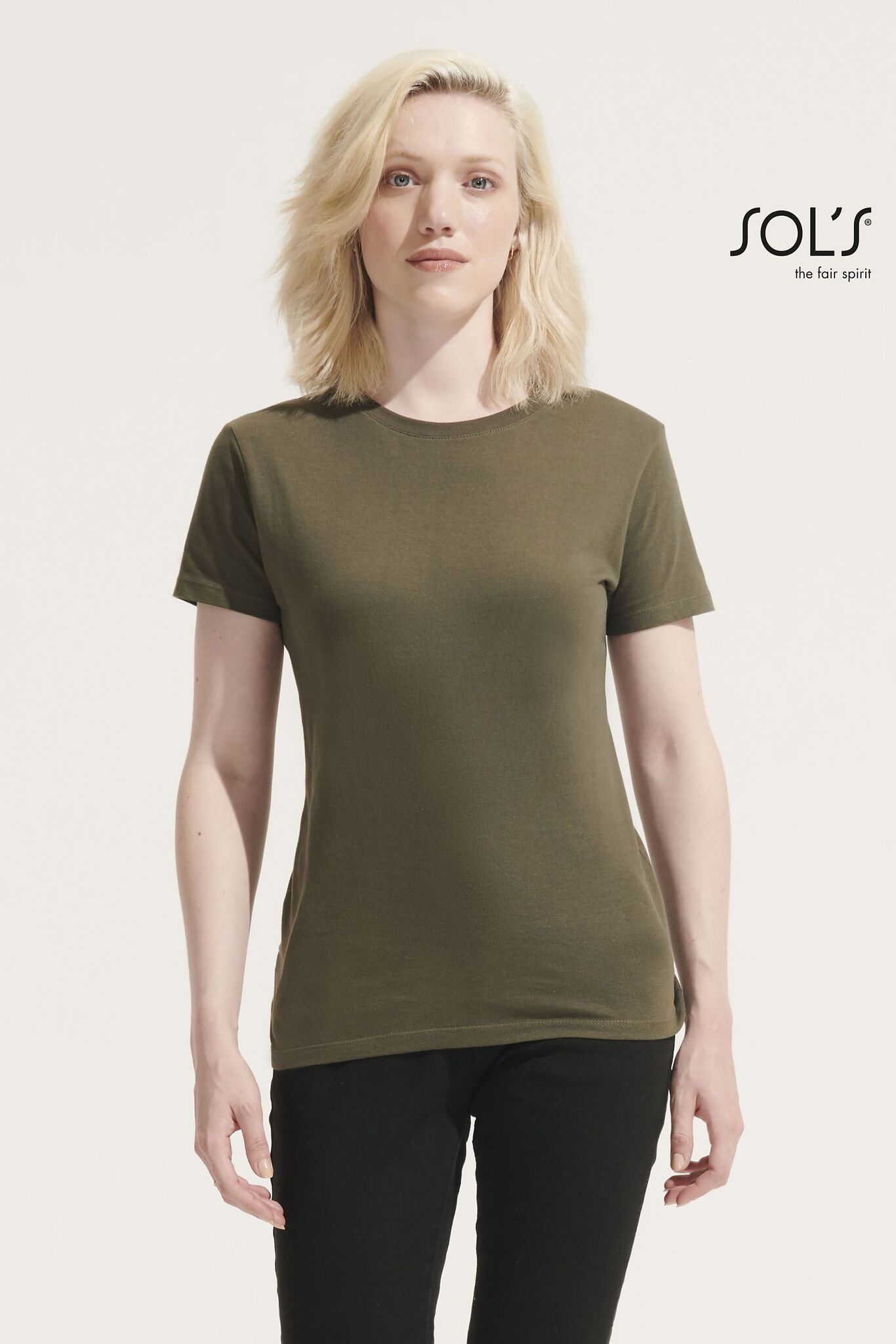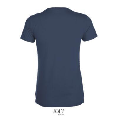 ЖЕНСКАЯ ФУТБОЛКА С КРУГЛОЙ ГОРЛОВИНОЙ. Полоса на воротнике; Ребристый воротник; Короткие рукава; Зауженный крой; Вшитый разрез