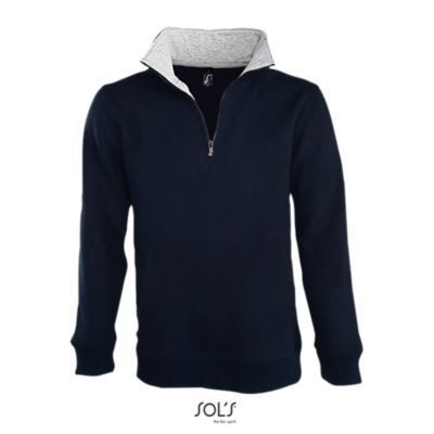 СВИТШОТ С ВОРОТНИКОМ «ДАЛЬНОБОЙЩИКА» (МОЛНИЯ 1/4). Подол и манжеты из эластана; Подкладка на воротнике; Воротник с контрастной подкладкой; Облегающие рукава; Вшитый разрез