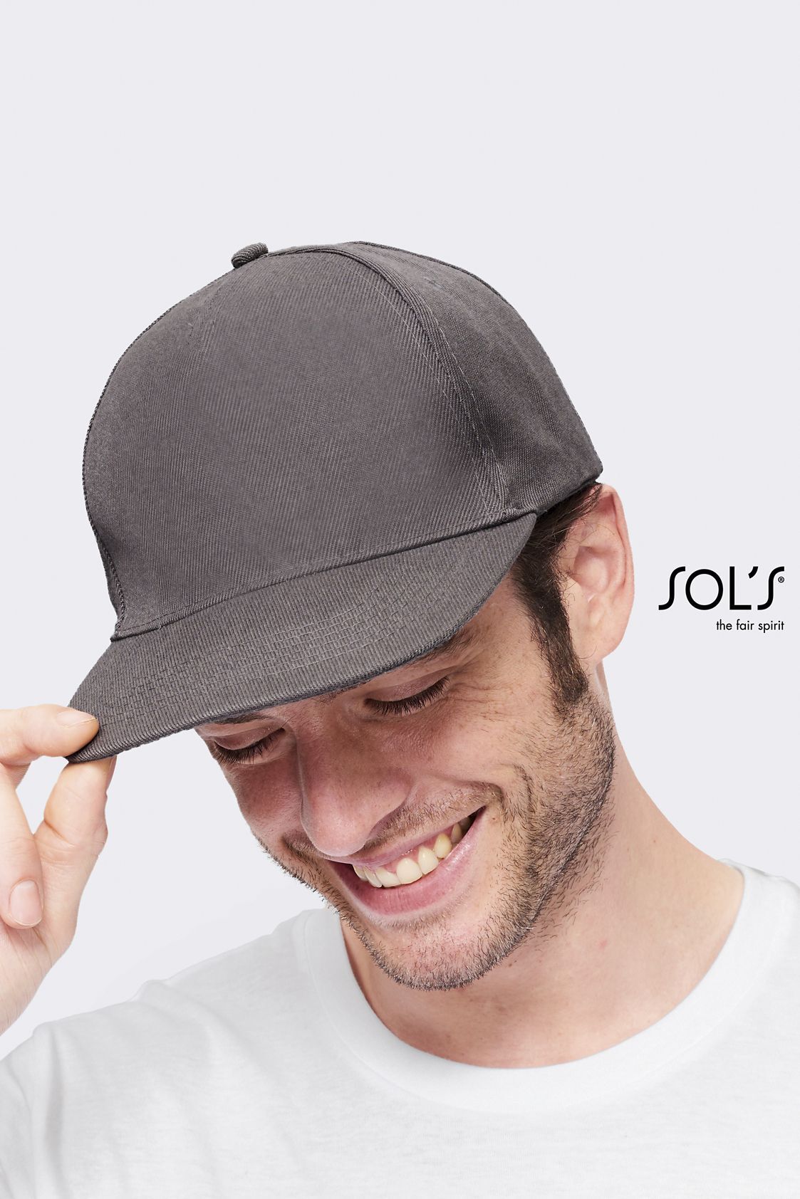 БЕЙСБОЛКА С 5 КЛИНЬЯМИ. 5 клиньев; Плоский козырек ; 4 вышитых отверстия; Регулируемая пластмассовая застежка сзади
