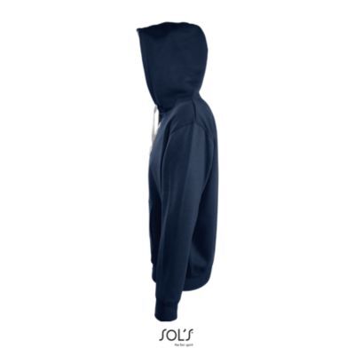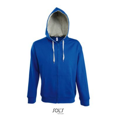 КУРТКА МУЖСКАЯ КОНТРАСТНЫХ ЦВЕТОВ, ВНУТРЕННЯЯ СТОРОНА ИЗ МОЛЬТОНА С НАЧЕСОМ. Подол и манжеты из эластана; Облегающие рукава; 2 кармана кенгуру; Капюшон с контрастной подкладкой и контрастным шнурком; Потайная молния; Прямой срез; Прошитый срез