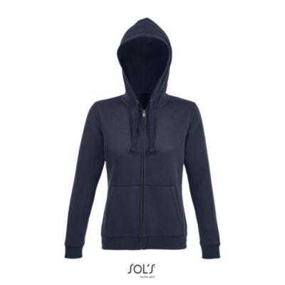 ЖЕНСКАЯ КУРТКА НА МОЛНИИ С КАПЮШОНОМ. Втачной рукав; 2 кармана "кенгуру"; Кроеный трикотаж; Капюшон на подкладке со стягивающим шнурком в цвет изделия; Манжеты и низ изделия в резинку 2х2; Нашитый полукруг с внутренней стороны выреза; Укрепляющая тесьма по внутренней стороне ворота; Zip YKK