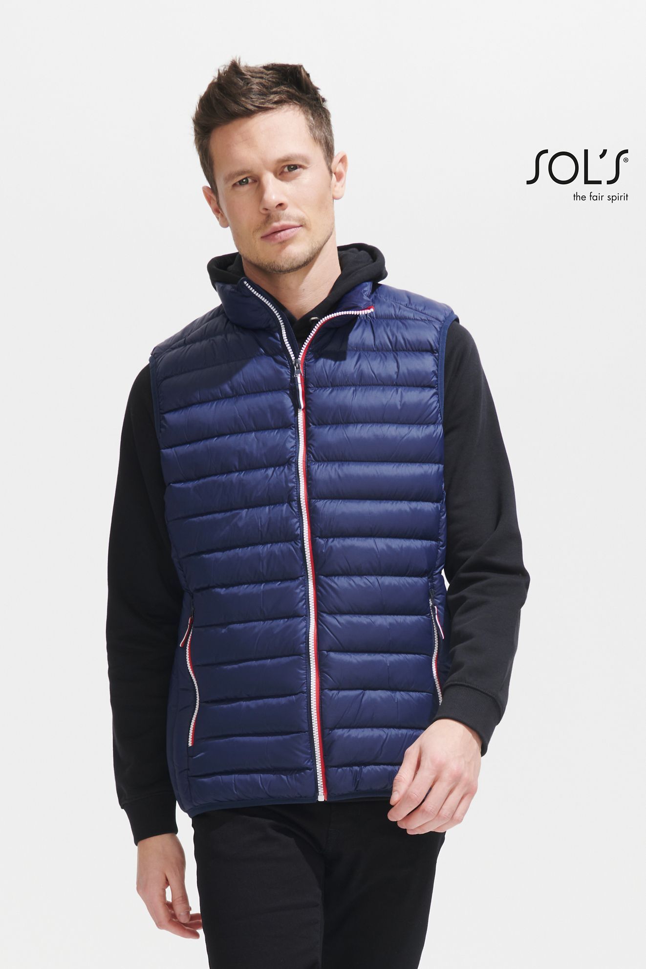 МУЖСКОЙ ЛЕГКИЙ БОДИВАРМЕР. Застежка-молния; 2 передних кармана на молнии; 2 внутренних кармана; Трехцветные детали; Система "in bag": складывается в мешочек на шнурке со стопорами