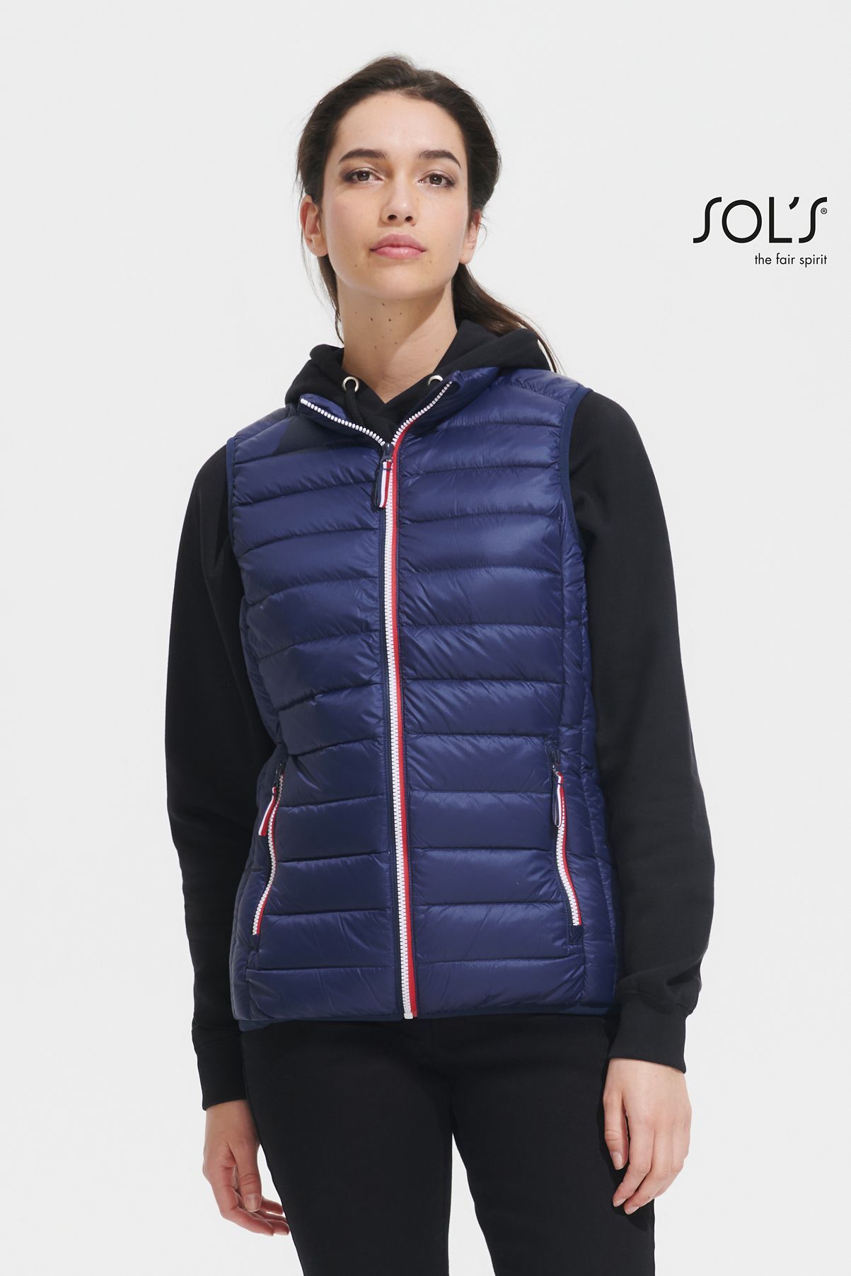 ЖЕНСКИЙ ЛЕГКИЙ БОДИВАРМЕР. Застежка-молния; 2 передних кармана на молнии; 2 внутренних кармана; Трехцветные детали; Система "in bag": складывается в мешочек на шнурке со стопорами