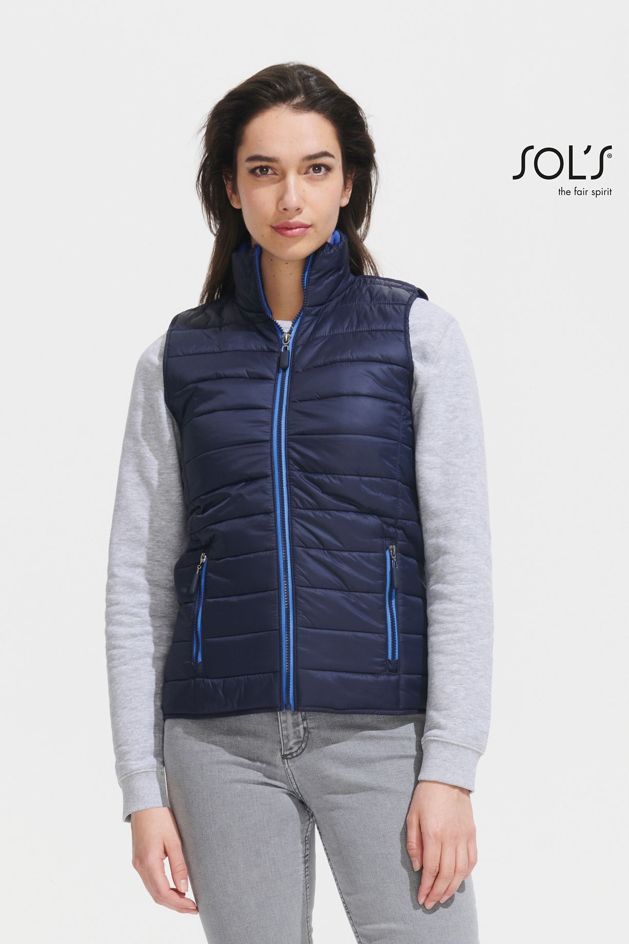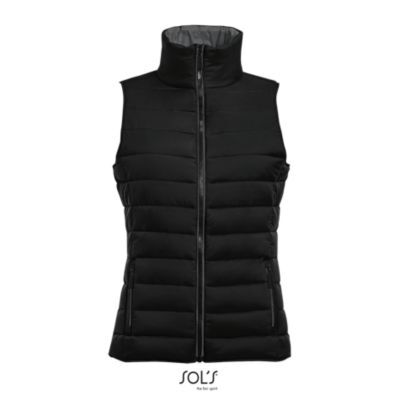 ЖЕНСКИЙ ЛЕГКИЙ ЖИЛЕТ. 2 кармана на молнии в цвет подкладке; Воротник-стойка, приталенная модель; Окантовка по низу жилета тон в тон