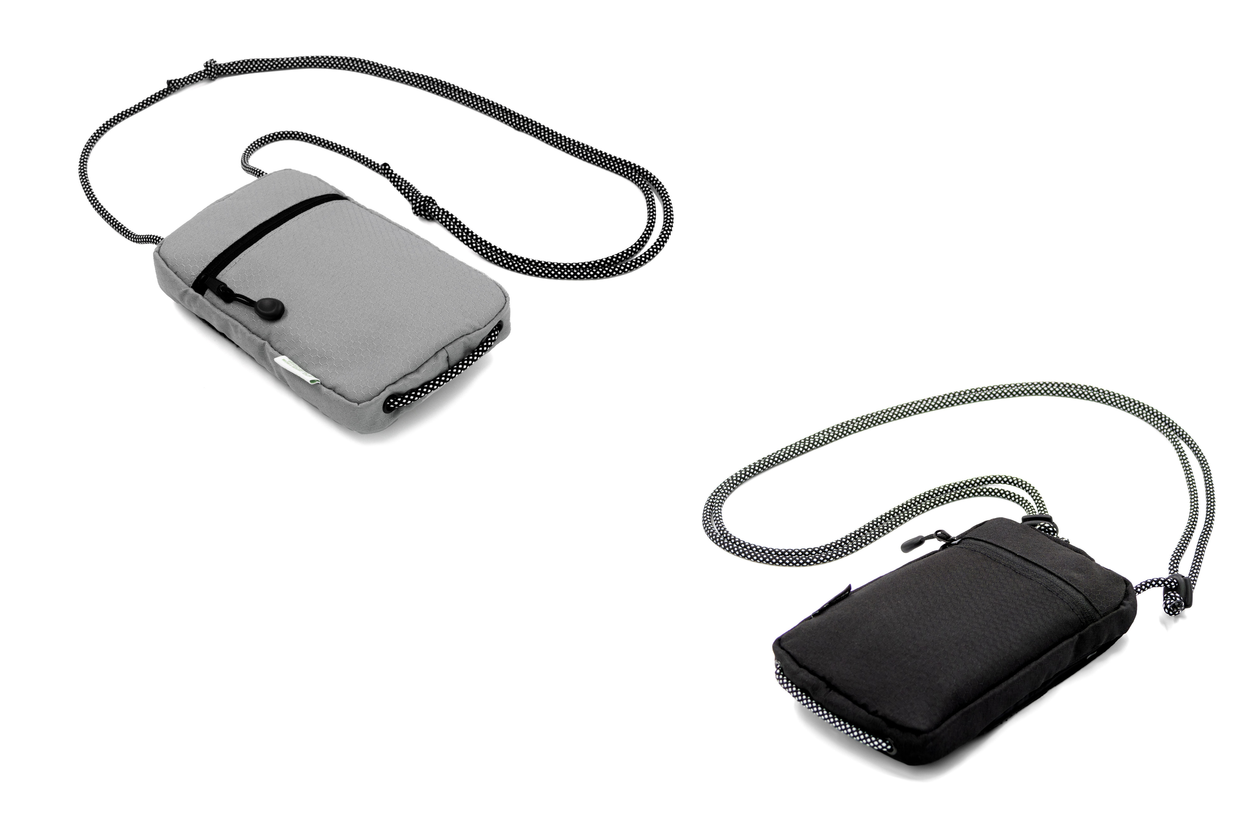 Компактная сумка из переработанных PET-бутылок (2 шт.) Изготовлена из водонепроницаемого ПЭТ материала, оснащена магнитным замком со шнуром-молнией и удобными отделениями для телефона, кошелька и ключей. Регулируемый ремень позволяет носить сумку через плечо или на груди.