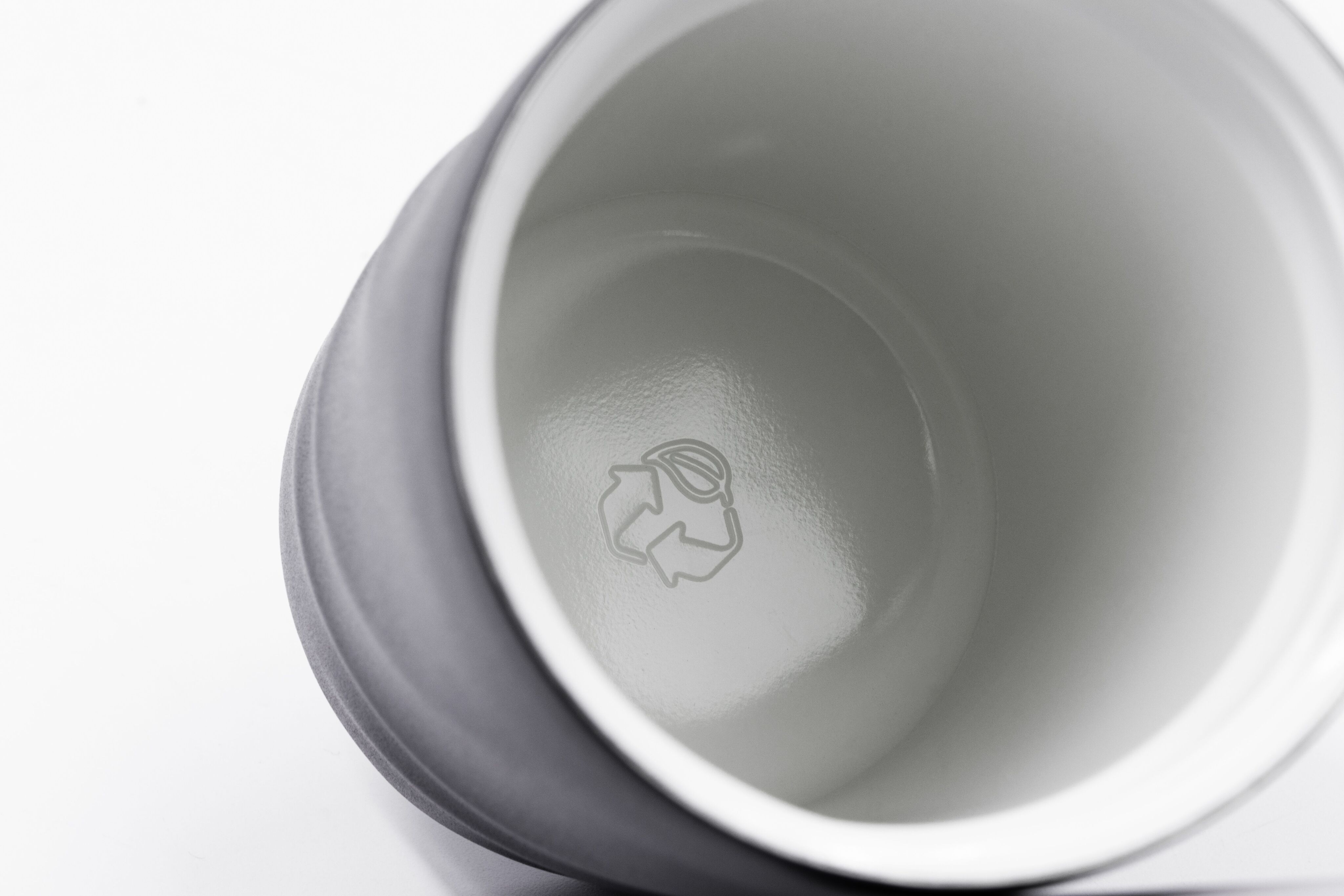 Термостакан изготовлен из переработанной нержавеющей стали без содержания BPA и имеет внутреннее керамическое покрытие, которое сохраняет естественный вкус напитков. Прозрачная крышка из прочного тритана с герметичной резьбой защищает от протечек, устойчива к высоким температурам и не бьётся. Оснащена удобной петлёй-держателем, к которой можно прикрепить наплечный ремень (не входит в комплект). Благодаря технологии изоляции Coppertech©, термостакан сохраняет температуру до 12 часов для холодных напитков, до 18 часов — со льдом и до 4 часов — для горячих. Допускается мытье в посудомоечной машине.
