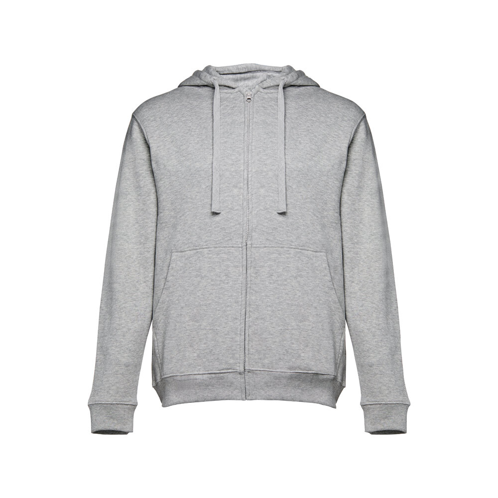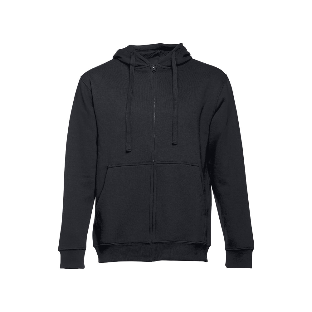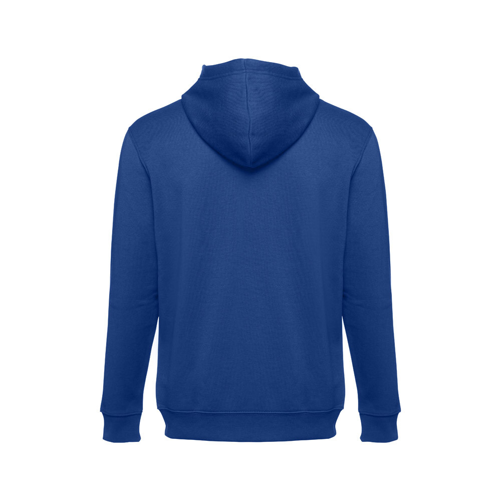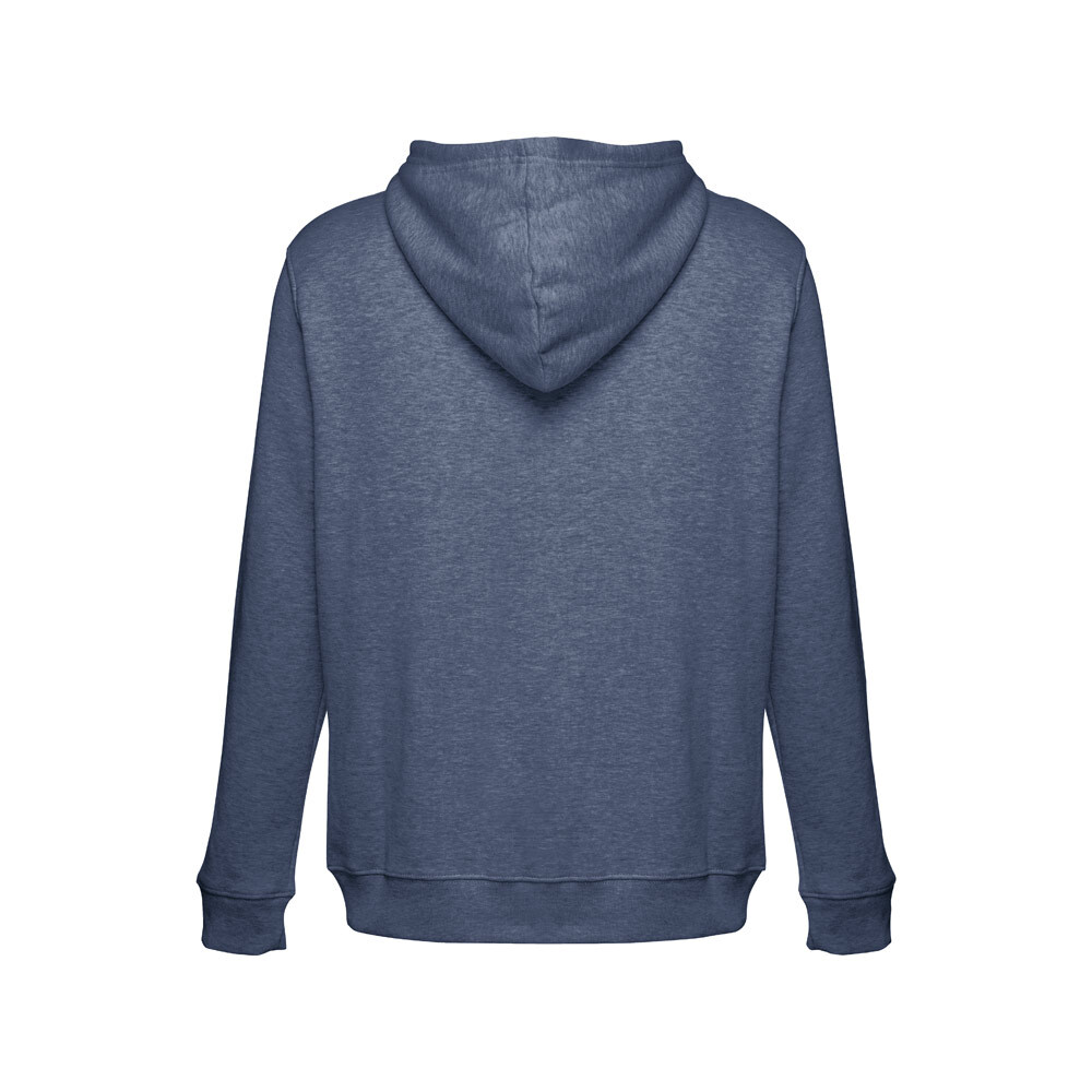 Мужская толстовка из 50% хлопка и 50% полиэстера (320 г/м²) с внутренним начесом. Капюшон с подкладкой и на цветном шнурке. Спереди два кармана-кенгуру с пластиковой потайной молнией. Ребристые манжеты и пояс. Размеры: S, M, L, XL, XXL