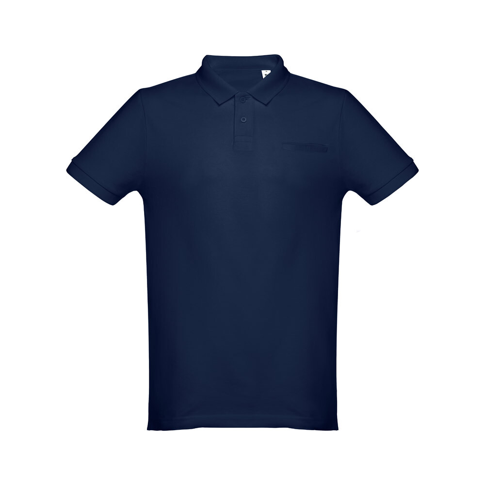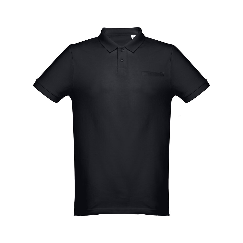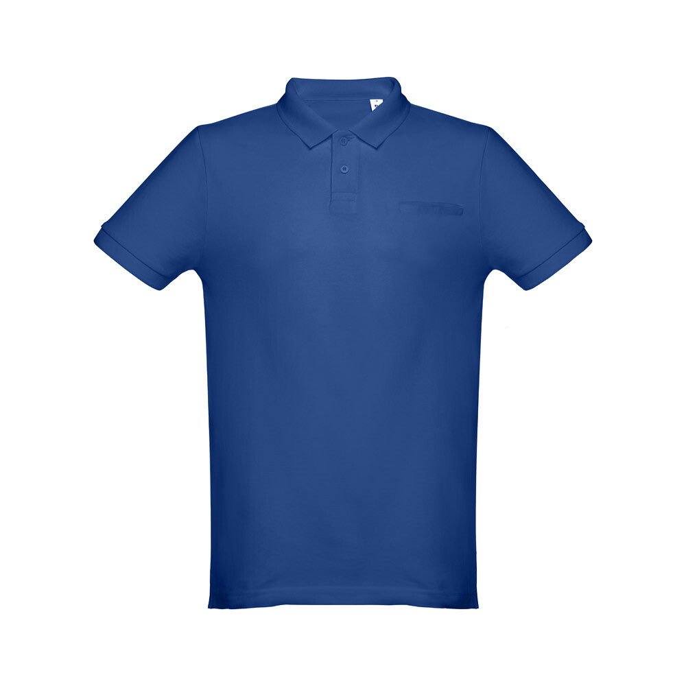 Мужское поло с короткими рукавами из 100% хлопка-кардигана (195 г/м²) (цвет 183: 85% хлопок/15% вискоза). Ребристый воротник и рукава, воротник усилен тесьмой пике. Усиленная планка с 2 пуговицами в тон (запасная пуговица вставлена во внутренний шов). Современный крой с простым карманом на груди. Покрой и прошив с небольшими боковыми разрезами на нижней части поло. Размеры: S, M, L, XL, XXL