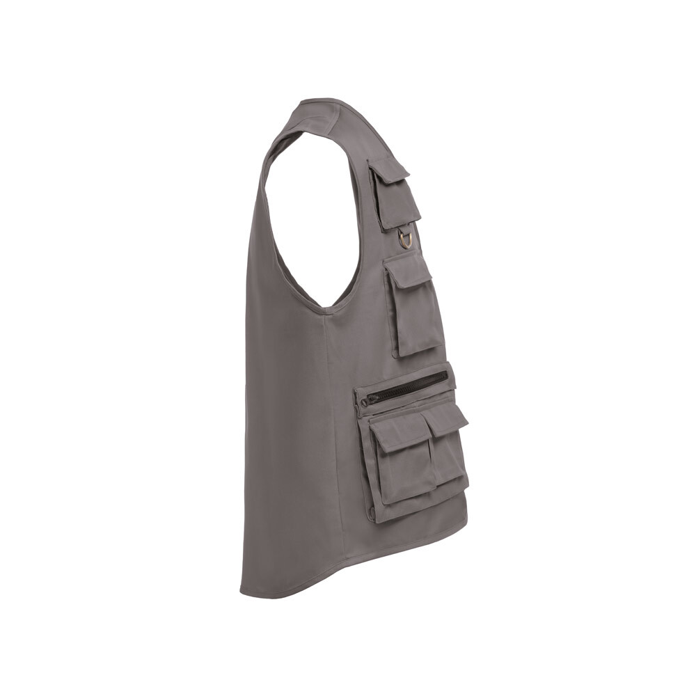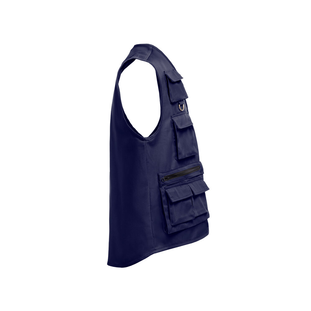 Жилет из полиэстера (65%) и хлопка (35%) с несколькими карманами (200 г/м²) с водоотталкивающим покрытием. Подходит для журналистов и других профессий. Размеры: S, M, L, XL, XXL