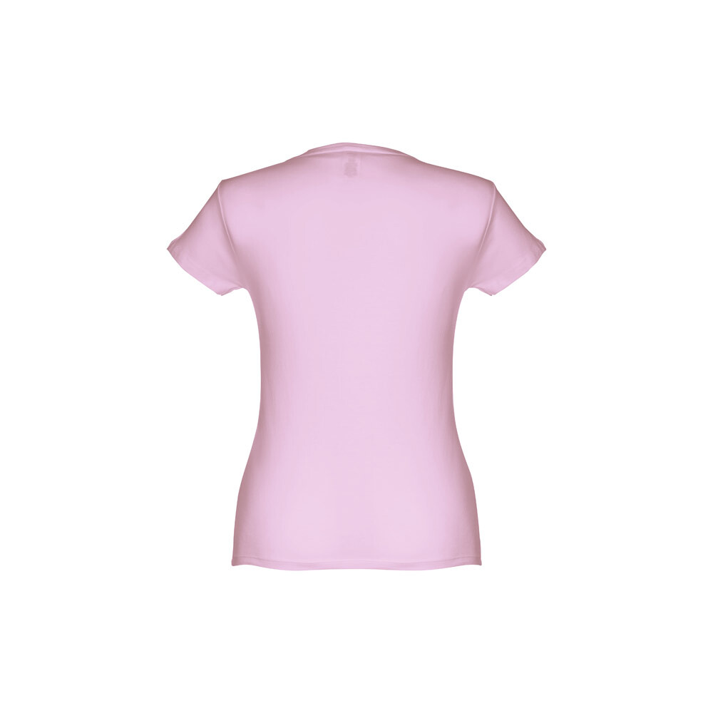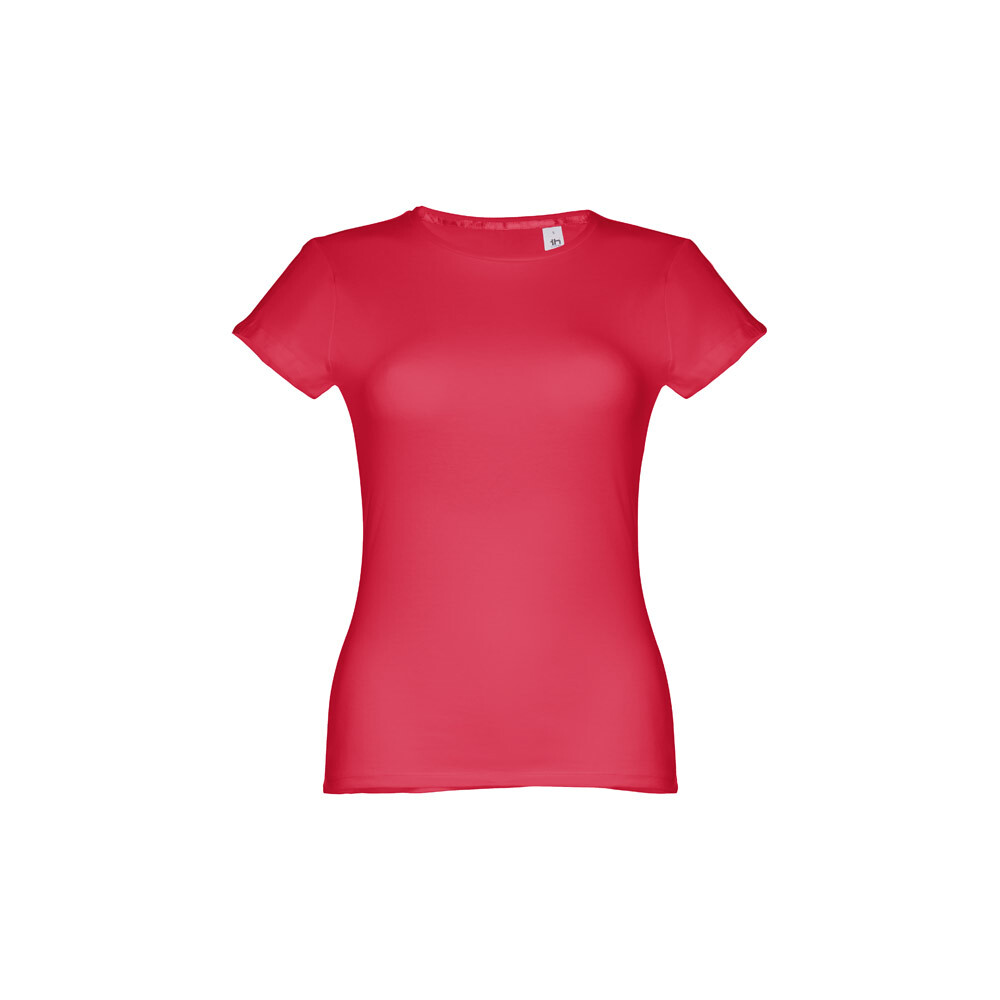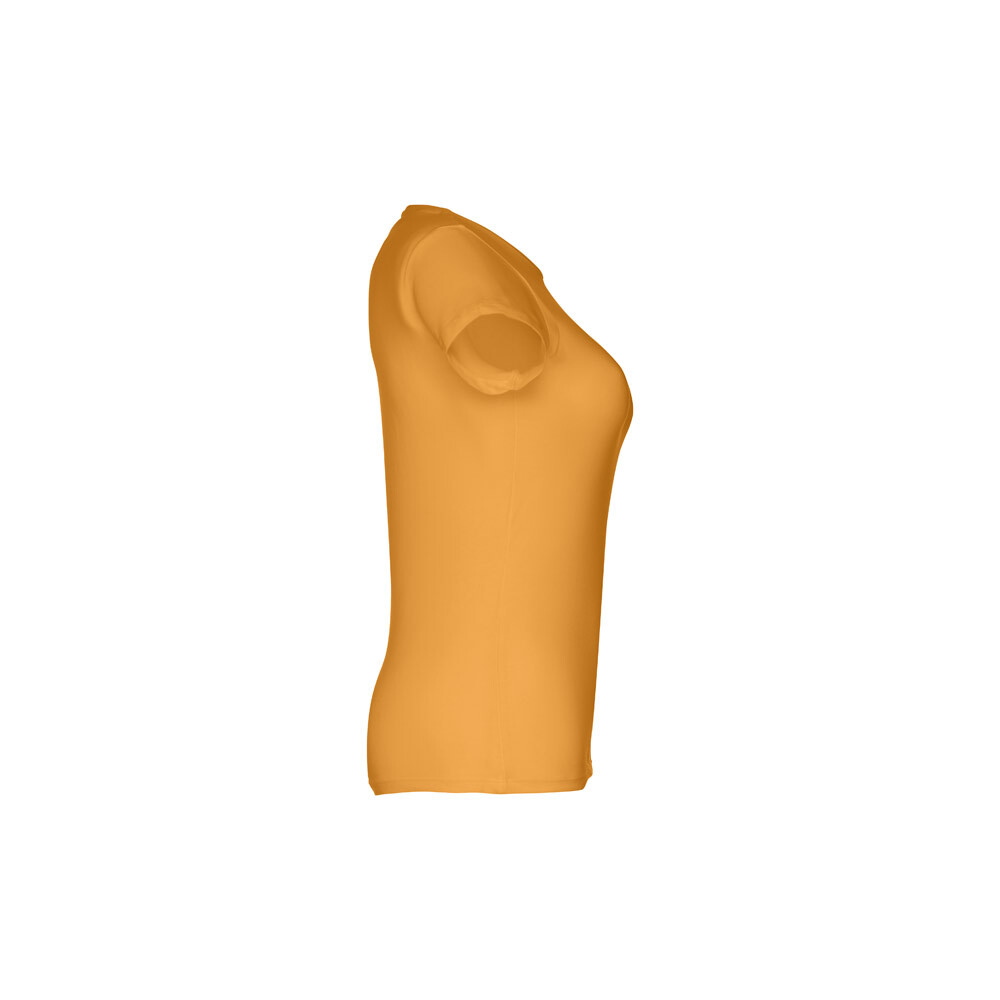 Женская приталенная трикотажная футболка из 100% хлопка (150 г/м²) с прочесанной хлопковой нитью (цвет 183: 90% хлопок/10% вискоза). Воротник из тонкого двойного джерси с армирующей атласной лентой. Крой и прошив двойной строчкой по рукавам и низу. Размер: 3XL