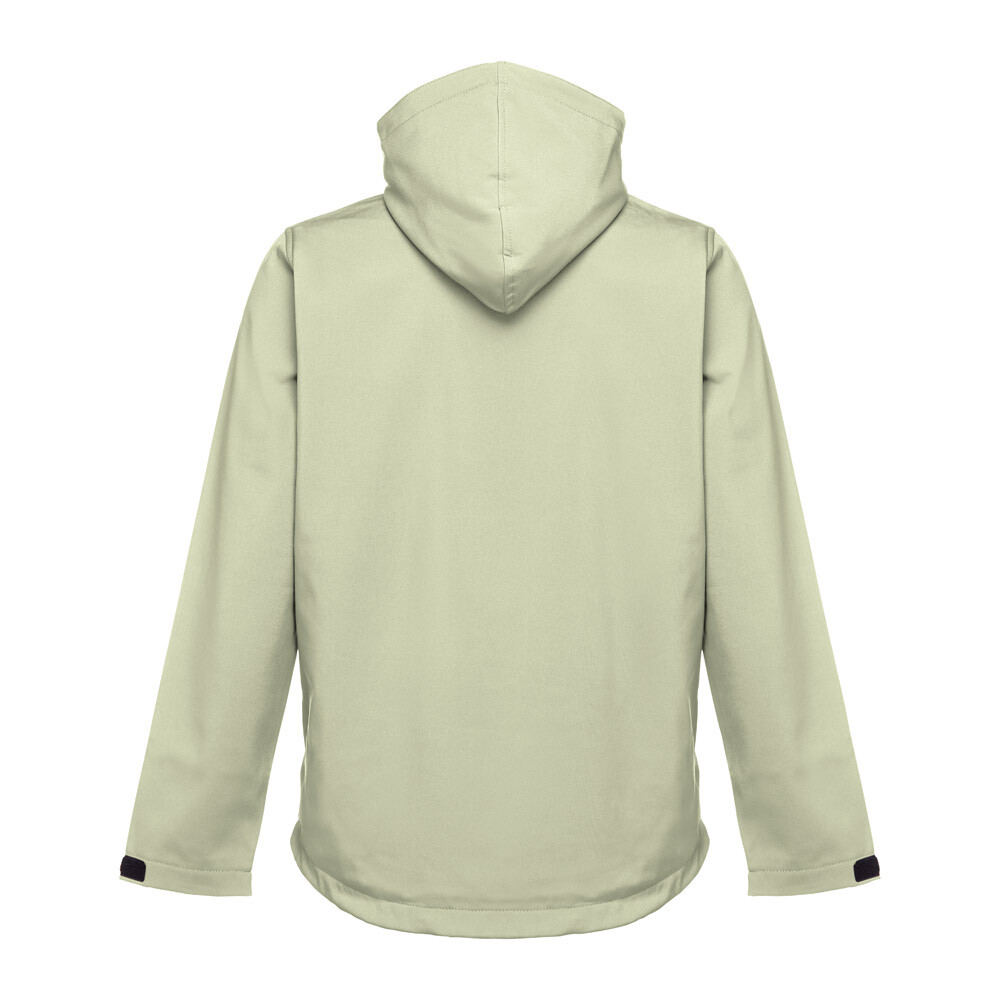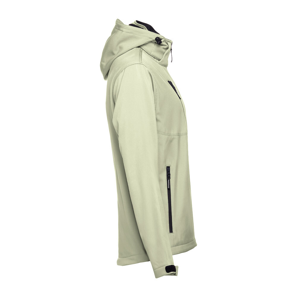 Мужская куртка Softshell из 96% полиэстера и 4% эластана (280 г/м²), двухслойная, со съемным капюшоном и водостойким покрытием. Куртка с флисовой подкладкой, 2 передних кармана и диагональный нагрудный карман, все на молнии. Регулируемые манжеты с застежкой-петлей. Съемный капюшон с утягивающим шнурком и петлевой застежкой для крепления к воротнику. Закругленный подол на спине. Размеры: S, M, L, XL, XXL
